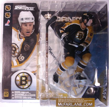 Joe Thornton chase variant action figure in black Boston Bruins jersey.