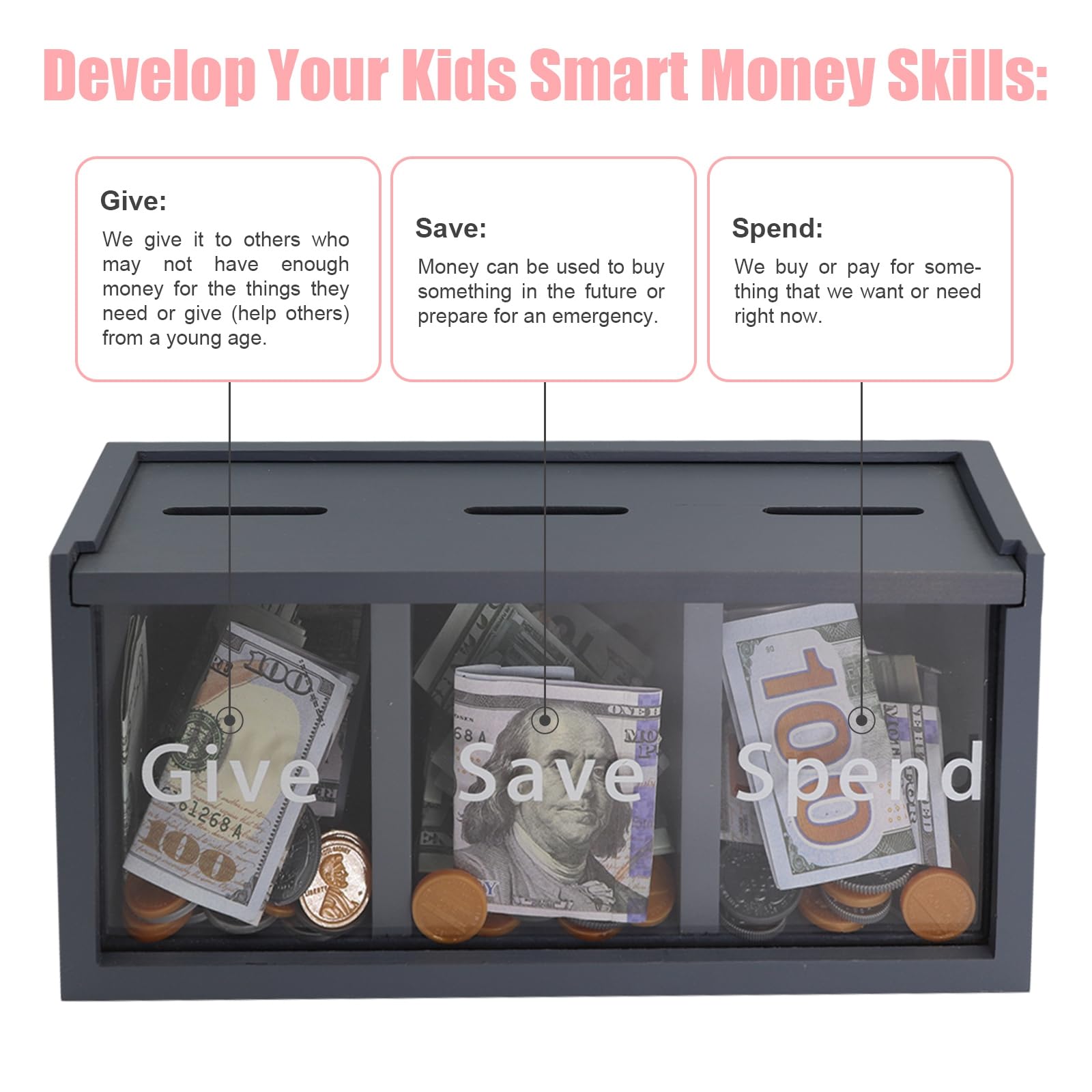Teaching Your Kids To Learn Important Money Lessons Should Be As Soon As Possible, So Give A Child The Gift Of Smart Money Skills Today! Why Choose Mczcent Spend Save Give Piggy Bank?
