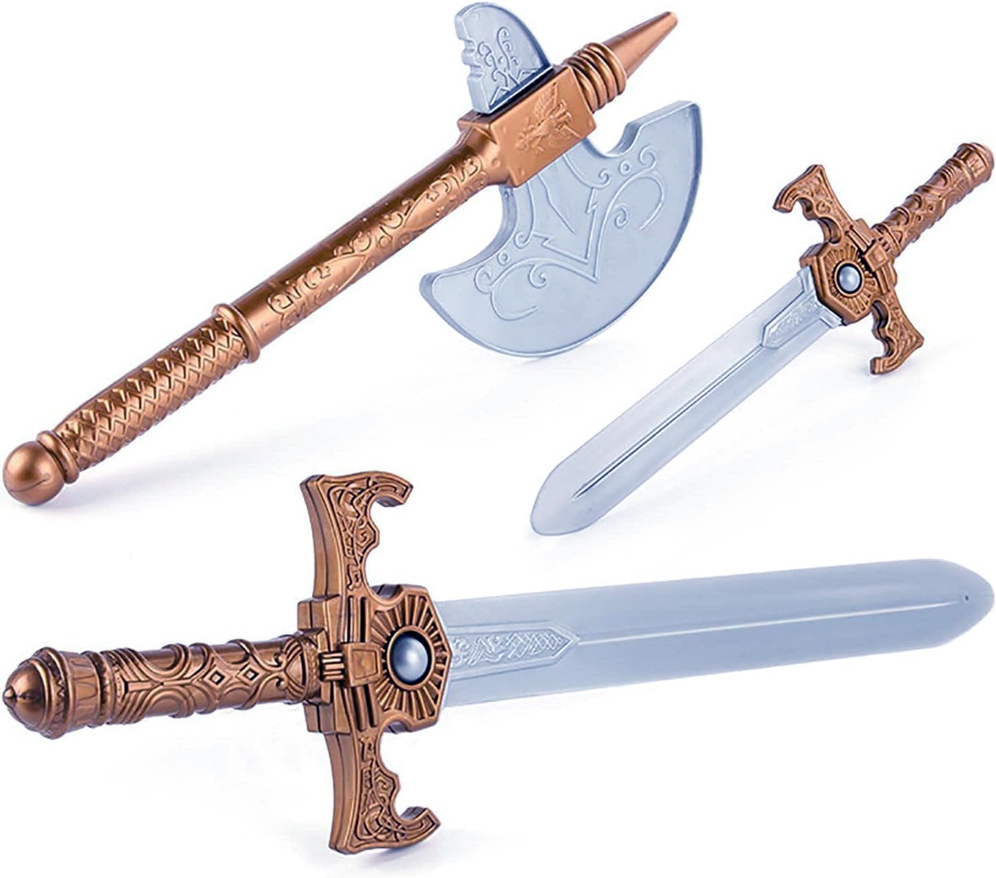View compareMedieval Knight in Shining protective covering Kids Crusader Pretend Role Play Plastic Costume Dress Up Cosplay with Toy decorative replica blades Axe Shield & Accessories Playset