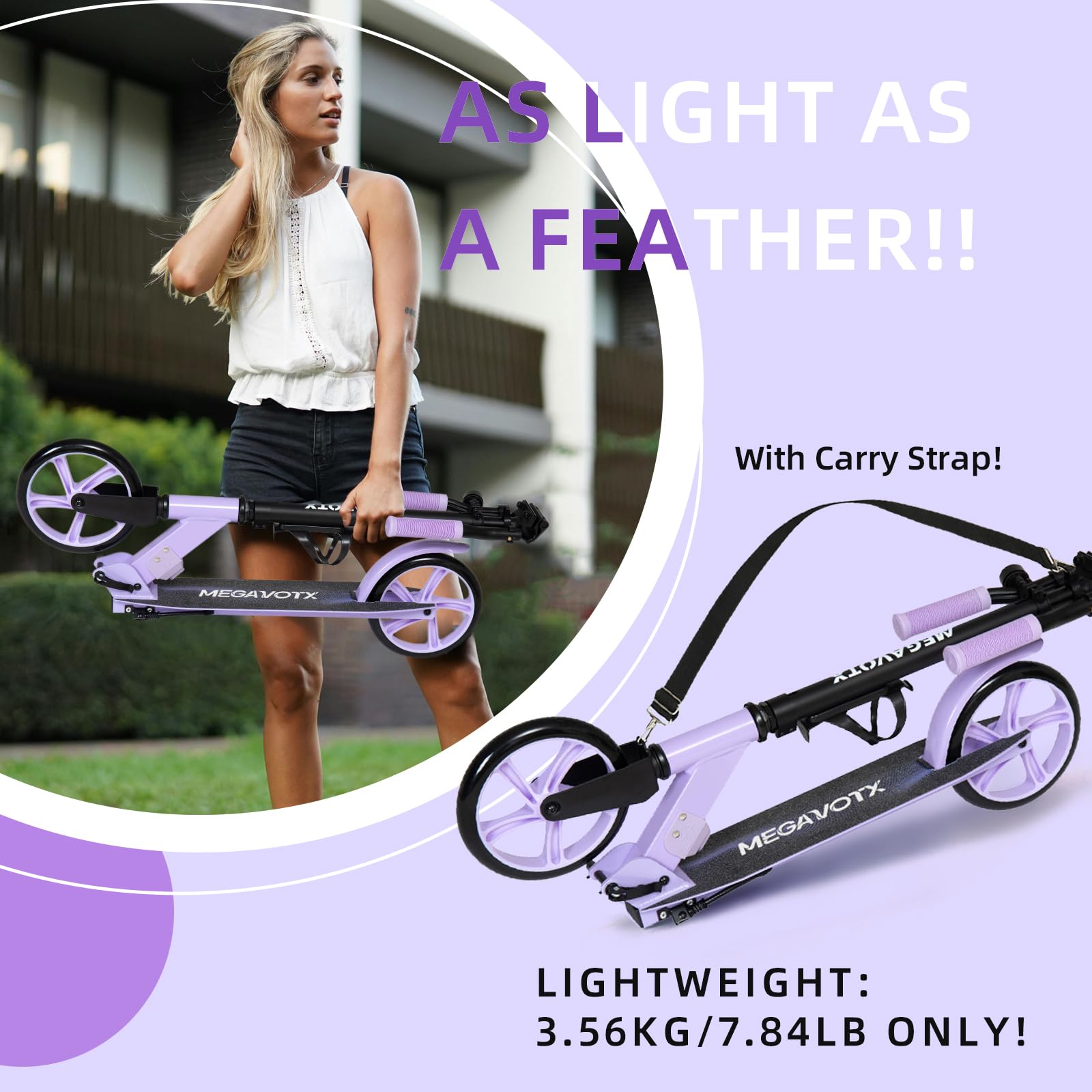 Megavotx Foldable Kids Scooter with 8 inch Sturdy Wheels - Scooters for Kids Teens mature-themeds Ages 6+ Adjustable Handlebar Gift for Boys&Girls 220lbs Max Load Capacity Bearing ABEC7 - Purple