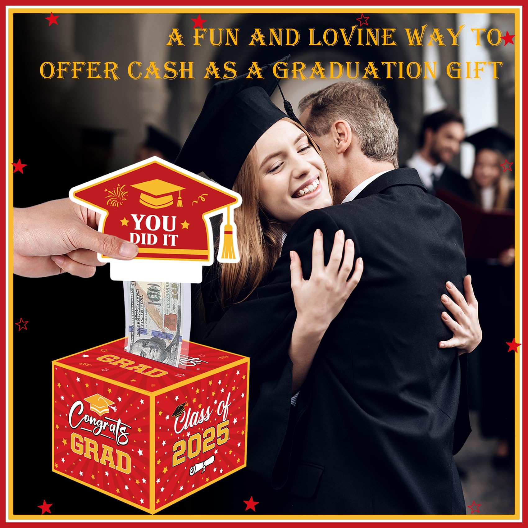 Meiidoshine Graduation Gifts, Graduation Money Box Red, Surprise Grad Money Holder with Pull Out Card, Class of 2025 Funny Cash