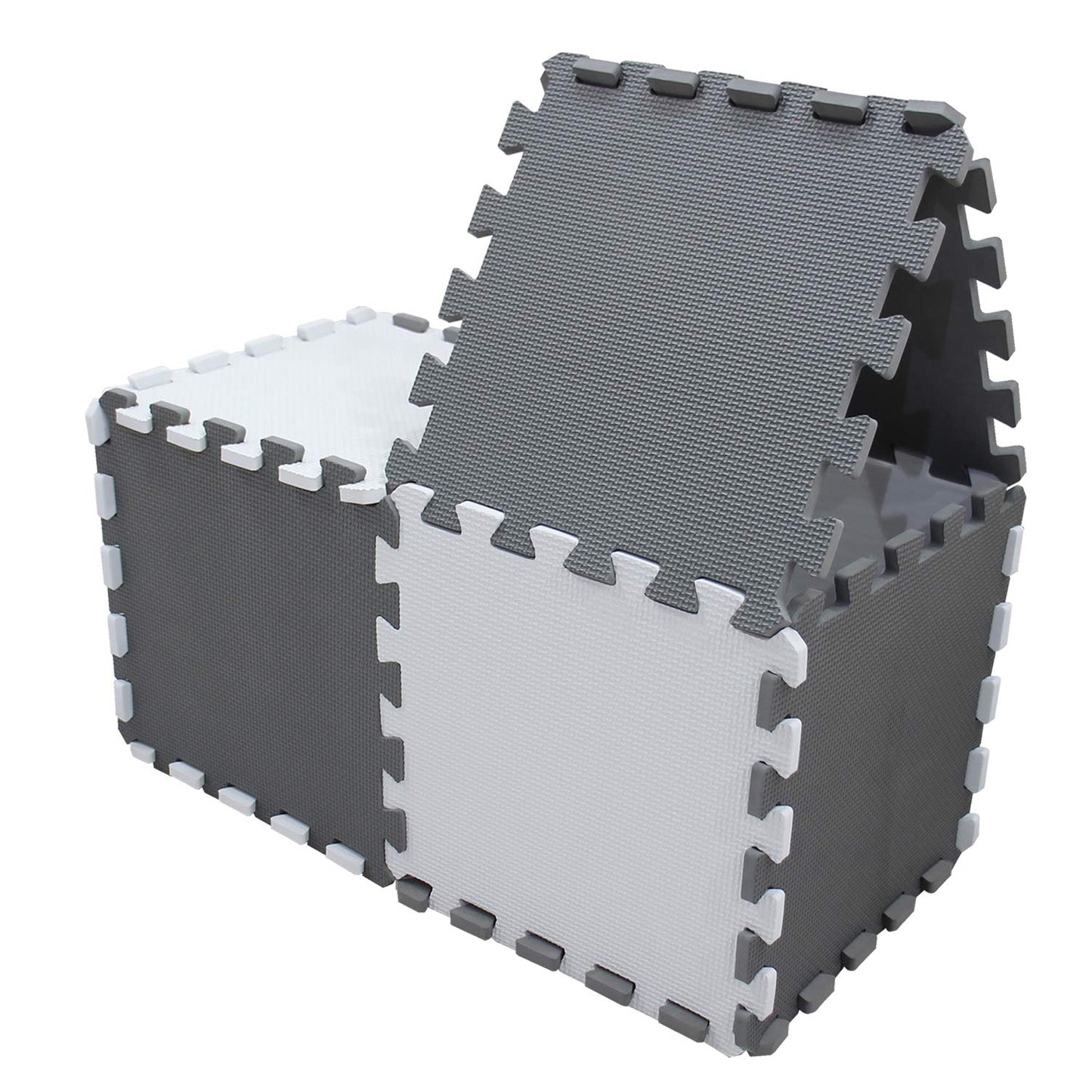 Meiqicool Foam Play Mat Tiles-18 Pack Eva-Interlocking Floor Mats For Children -Multicoloured Foam Tiles Puzzled Soft Foam Kids Play Area Mat White Grey : Mat Size: 172Cm X87Cm( 1Cm)/69 Inch X35 Inch (1 Inch) Each Tile:30 X 30 X 1.0Cm(12 X 12 X 0.4'') Components: 18 Tiles Play Mats Easy To Clean: Just Wipe With A Wet Cloth Q: Can I Put The Weight Or Equipment On The Mat? A: Sorry, We Suggest You Do Not Put Heavy Weights On It, Or The Indentation May Stay. And Can Shorten The Service Time. Q: Where Can I Use These Mats? Can I Use Them On The Carpet? A: You Can Use Them In Many Places If You Keep Floors Smooth And Clean, Such As Hardwood Floors, Laminate Floors, And Granite Tiles. We Recommend That You Do Not Use On The Fluffy Plush Carpet, Or The Mats May Not Be Good Match. Q: Are There More Colors On Sale? A: Yes. Now We Have A Lot Of Color Matching, You Can Enter Our Shop To Buy. Q: Do These Mats Contain Harmful Substances? A: No. They Are Lead-Free, Chromium-Free, And Do Not Contain Phthalates, Please Be Assured Of Use. Q: Are These Mats Easy To Clean? A: Yes. You Can Wipe It With A Damp Cloth. Q: Are These Mats Heat Resistant? A: These Mats Will Prevent Your Feet From Touching The Icy Hardwood Floor Directly,But We Do Not Recommend It Near The Fire Or Heat Source. Q: Are These Mats Odorless? A: Almost Odorless, But We'Re Not Sure For Sensitive People. Q: What'S In The Package? A: 18 Tiles Foam Play Mat.
