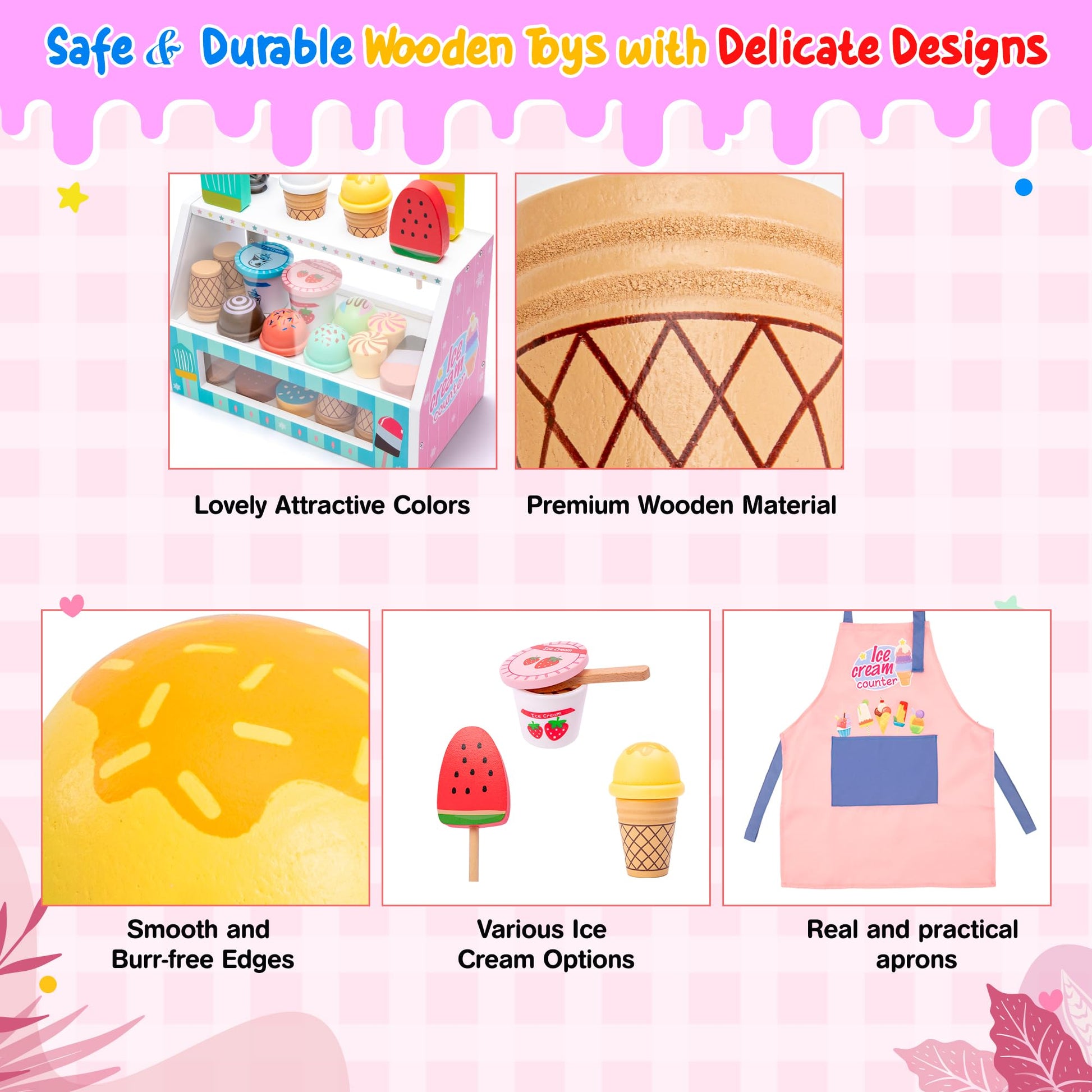 View compareMeland Ice Cream Toy - Wooden Ice Cream Play Set With Aprons, Kids Toys For Toddlers Pretend Play, Toys For Girls Boys 3 4 5 6 7