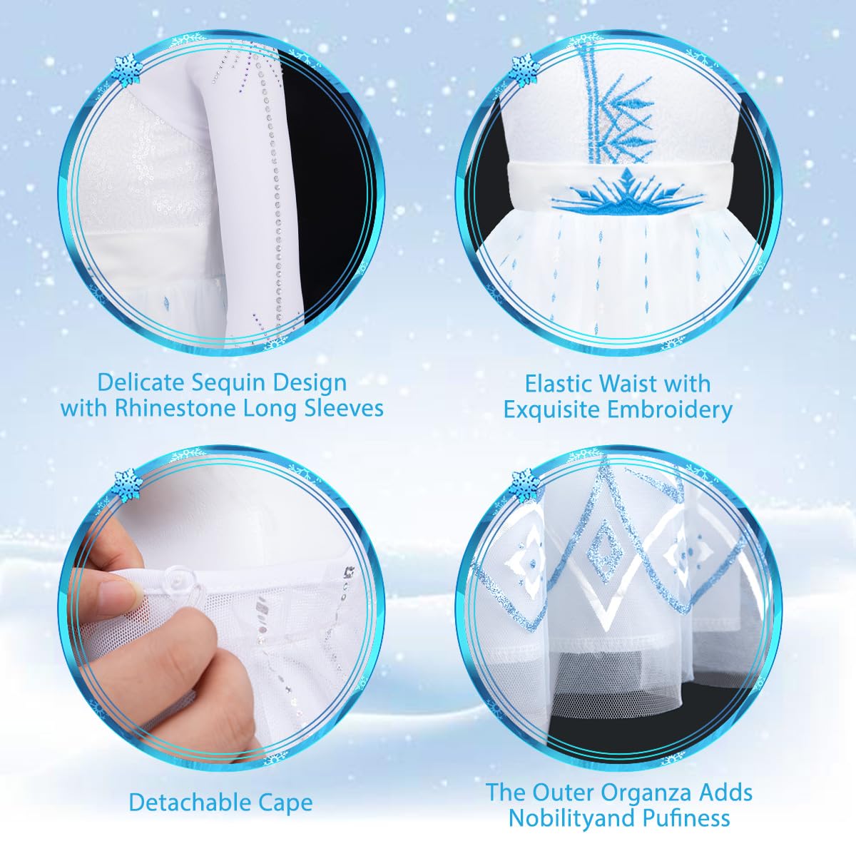 - Q: What accessories are included with the Meland Princess Dress? A: The dress comes with a long detachable cape, a glowing braid, a pair of white gloves, a white purse, a crown, a magic wand, a necklace, and a bracelet, providing everything your little princess needs for her royal adventures.