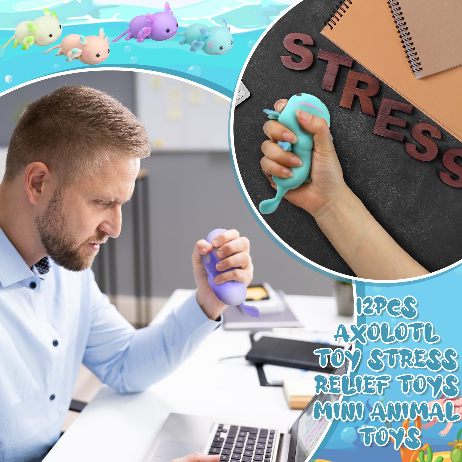 Meooeck 12 Pcs Axolotl Stress Relief Toys Stress Balls for mature-themed Mini Axolotl Squeeze Fun Fidget Toys Animal Balls Cute for Birthday Party Office Christmas Stocking Stuffer Gift ADHD Autism Anxiety
