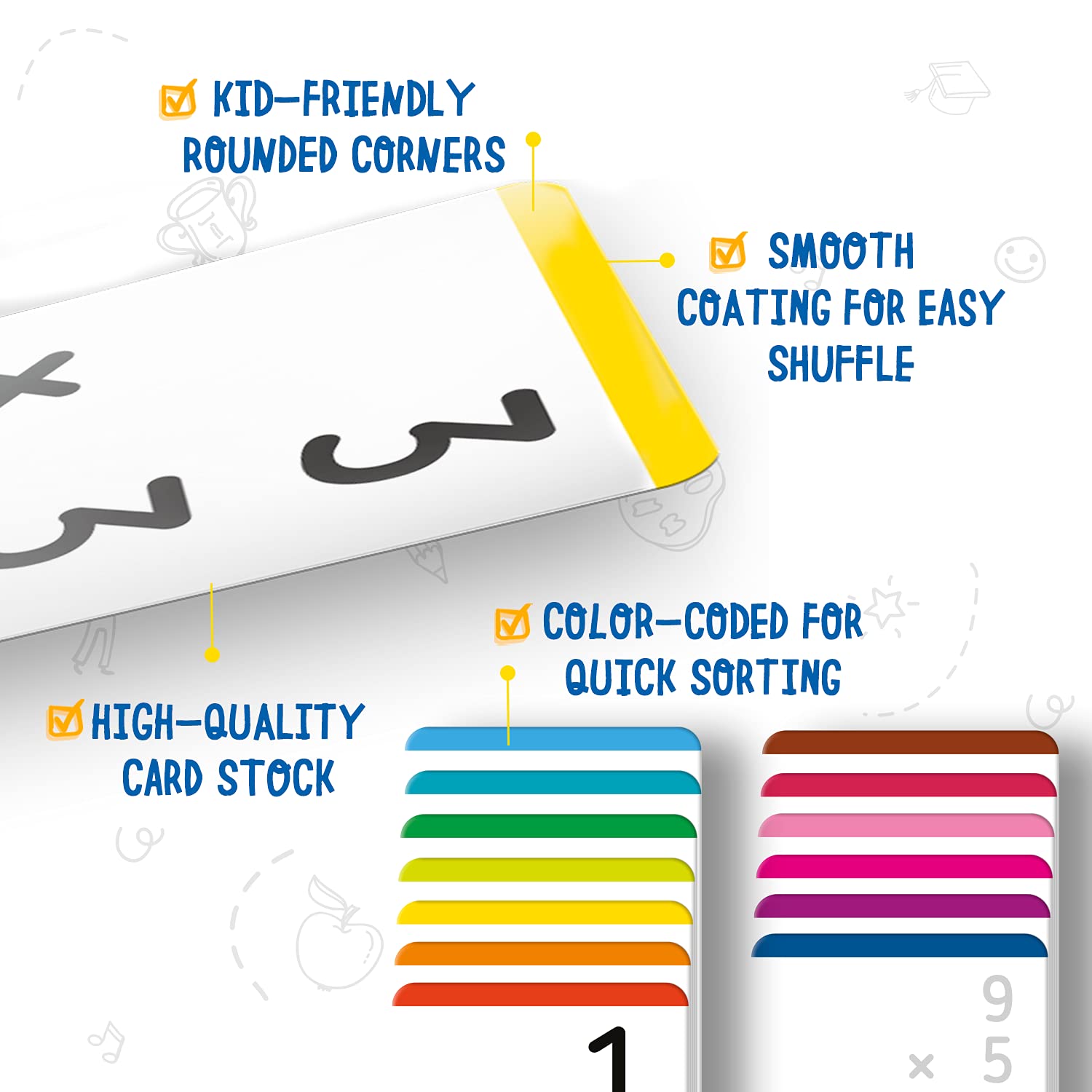 • Q: How can these flash cards help improve my child's math skills? A: These flash cards utilize colorful graphics and engaging illustrations to make learning fun, helping to enhance your child's recall, retention, and overall confidence in math.