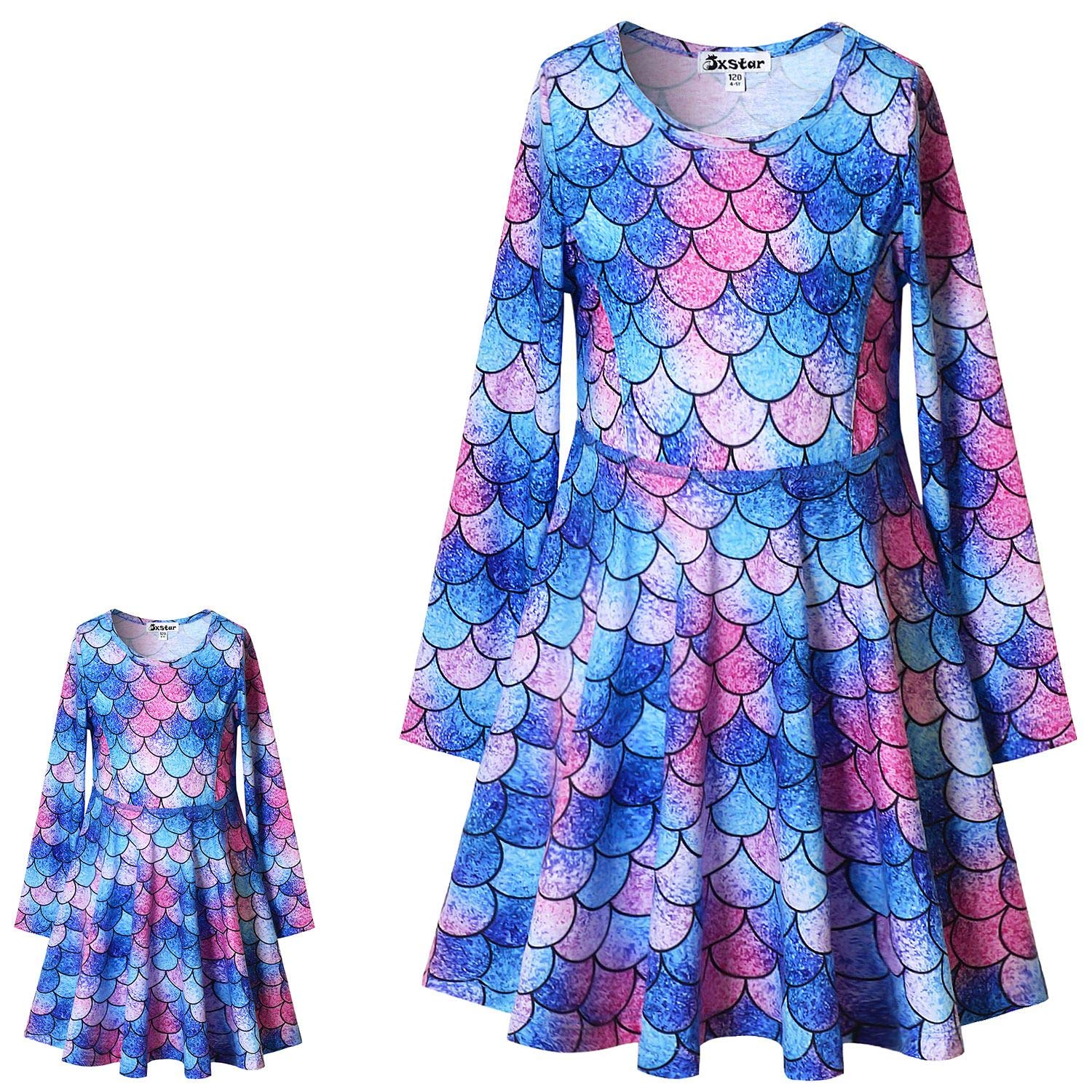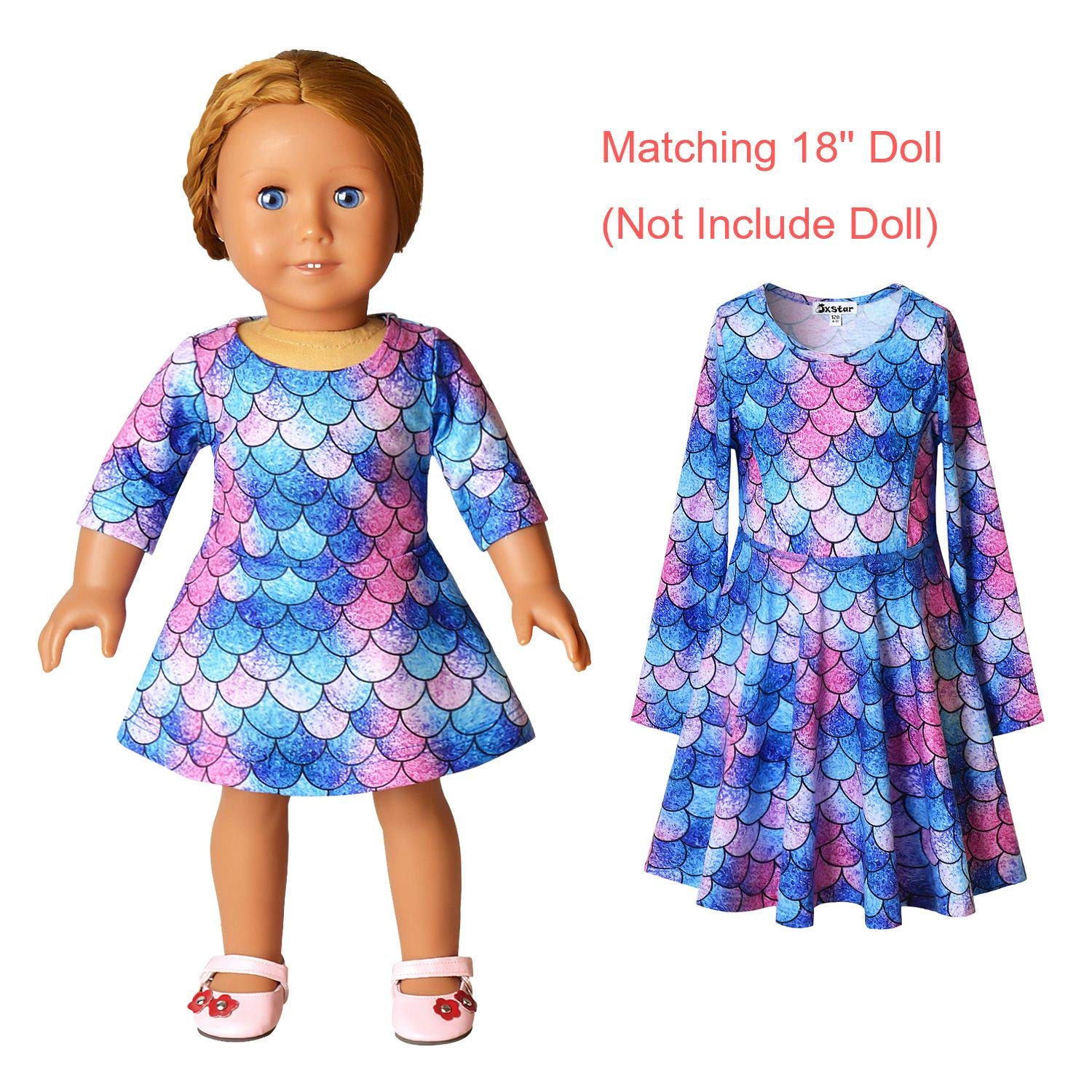 Matching Doll & Girls Mermaid Dresses Fits American Girl Dolls & 18 Inches Dolls | Cute Mermaid Dresses For Girls, Long Sleeve Dresses For Fall Winter Spring, Crew Neck, Knee Length | Your Girl And Her Doll Can Dress Alike For A Sweet Birthday Celebration, Halloween And Christmas Party | Great Christmas Gift, Halloween Costume For Girls, Wear Alone Or Match With Leggings, Capri Pants, Pants, Jacket | Note: Package Includes Girls&Dolls Dresses, Not Include Doll