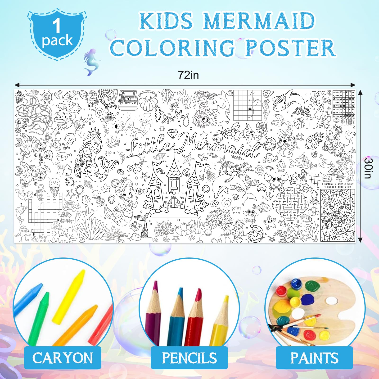 Mermaid Giant Coloring Poster For Kids 30 X 72 Inch, Mermaid Large Coloring Poster Sheets Tablecloth, Mermaid Themed Color-In Ac
