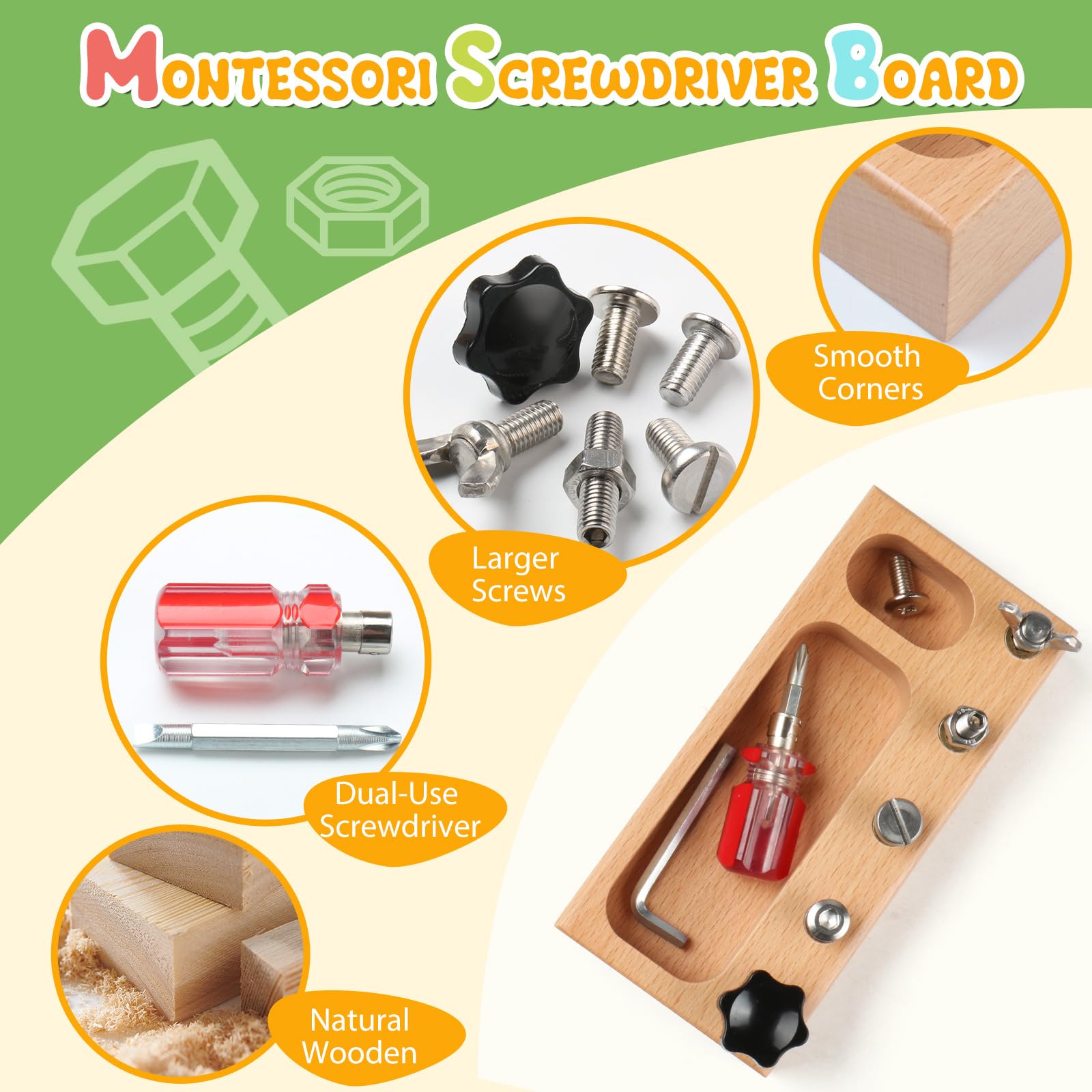 - Q: How does the Montessori Screw Board help in developing fine motor skills? A: The Montessori Screw Board features larger screws that are easier for small hands to grasp, promoting hand-eye coordination and dexterity. Engaging with the screws and tools helps toddlers enhance their fine motor skills while enjoying a fun and interactive learning experience.