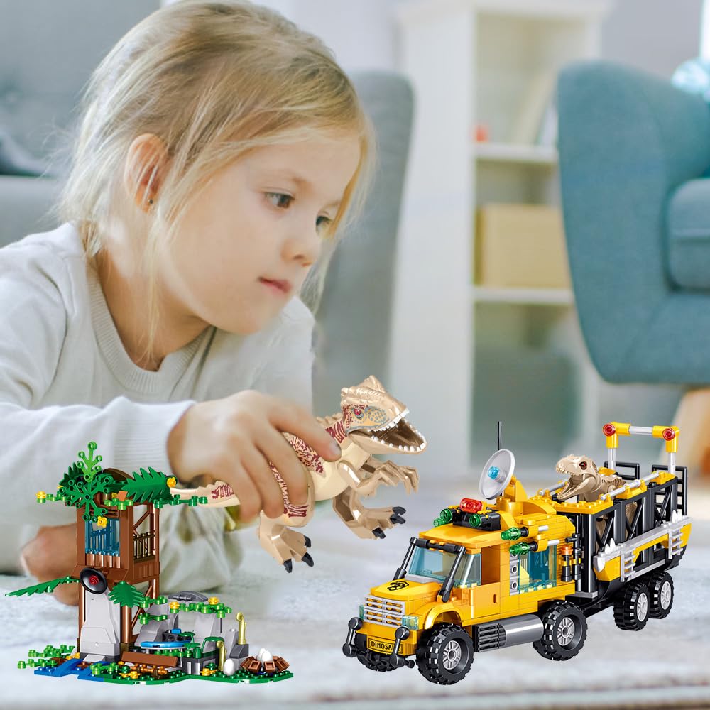- Q: What items are included in the dinosaur building blocks set? A: The set includes 546 pieces, featuring 2 dinosaurs, a research truck, a jungle treehouse deployment station, and a lookout tower. These components create a realistic dinosaur adventure scene for imaginative play.