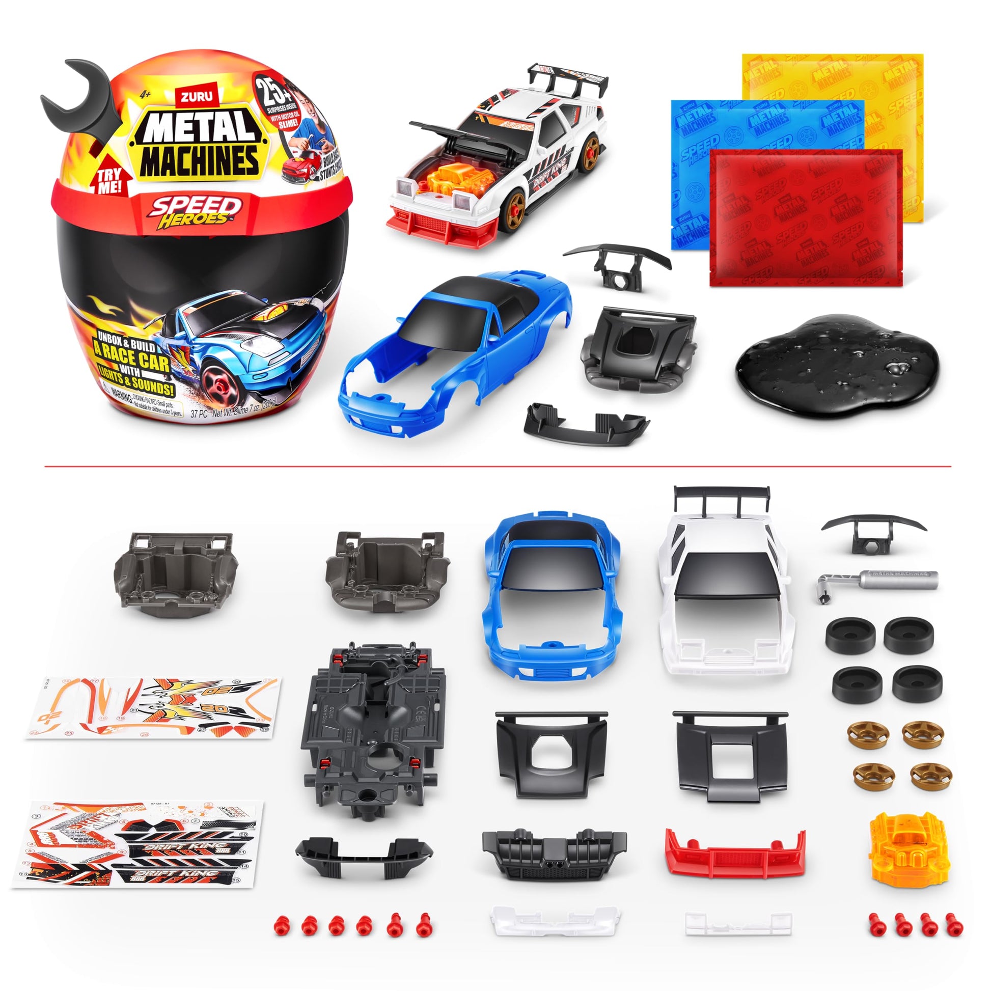 Jump into the drivers seat of your own custom race car with Metal Machines Speed Heroes! Break open the race helmet to discover 20+ surprises inside to build your very own custom race car. Customize the design and body of the race car as you build! Watch your custom speed hero come to life with lights and sounds. Challenge your friends to races and see which speed hero will dominate the race track!