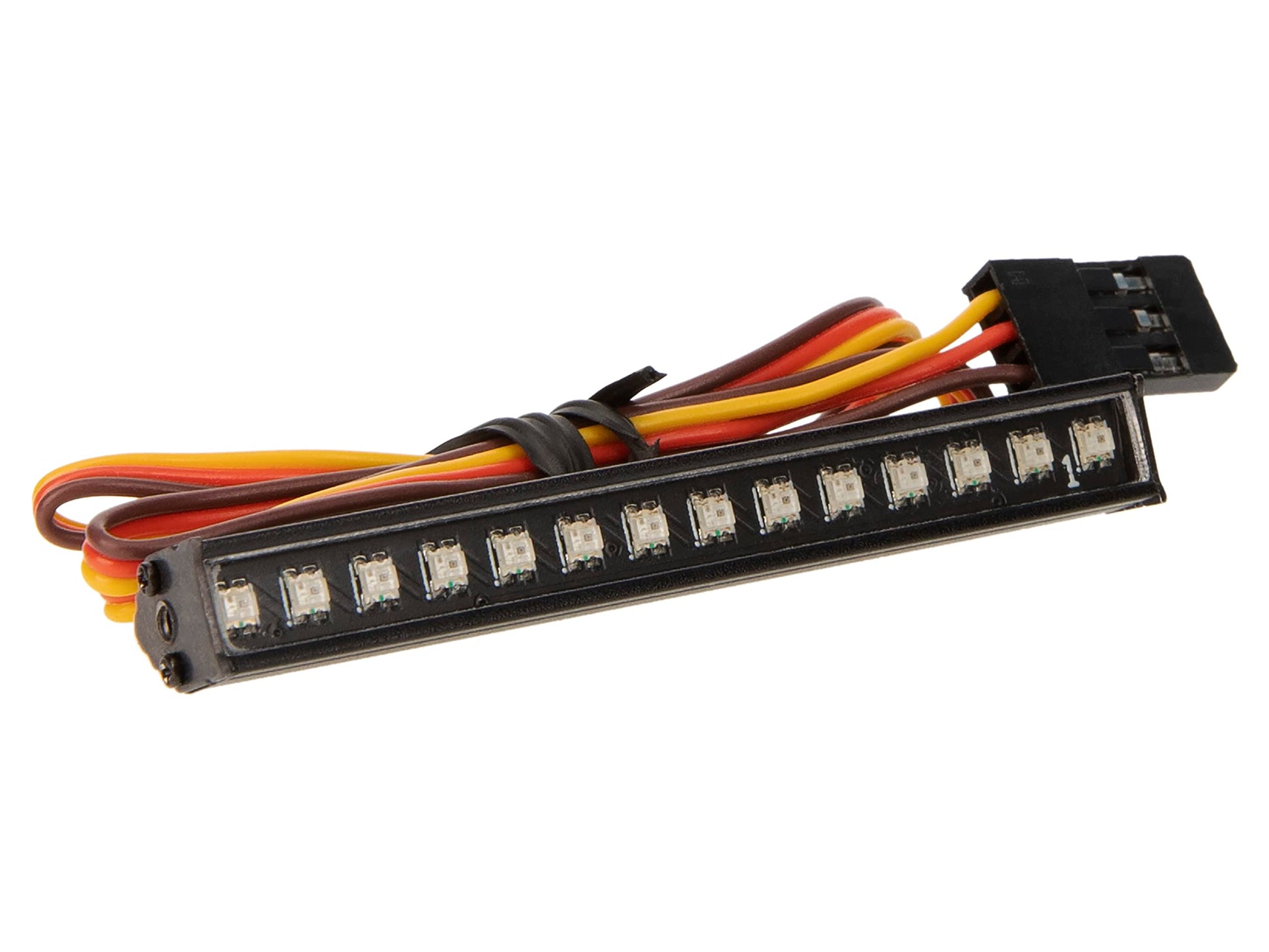 - Q: How many LED lights does the roof light bar feature? A: This roof light bar features 14 RGB full-color LED beads, offering vibrant lighting options for your RC model.