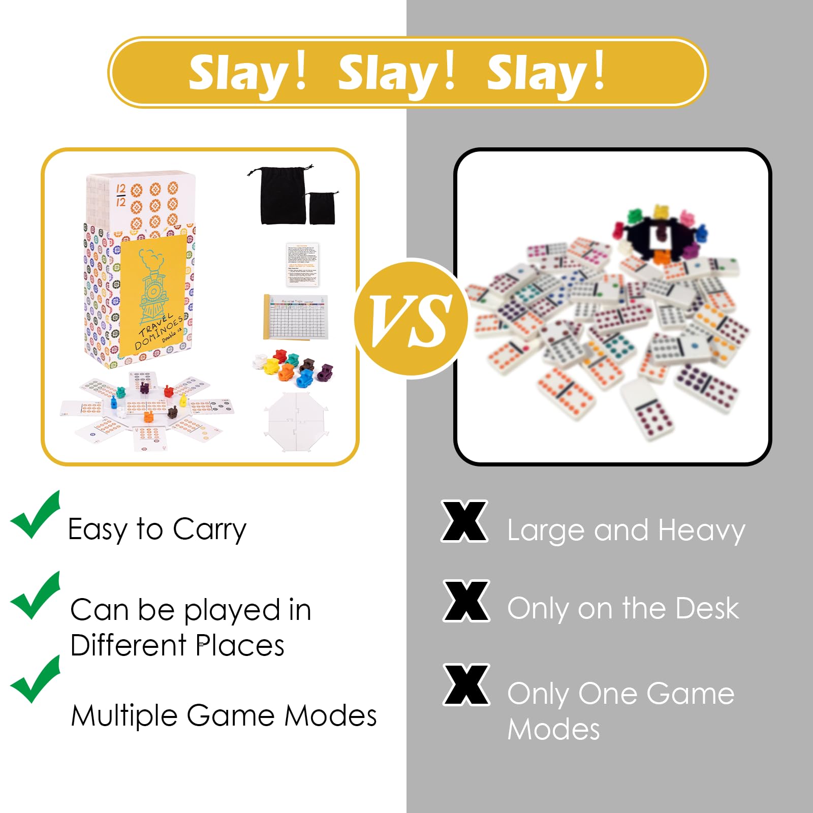 Mexican Train, Mini Travel Dominoes Game:105 Cards+1Hub For Mexican Train+8 Train Marker+1 Instruction+1 Scoresheet,Double 12 And Double 9 Dominoes Set,2-10 Players,Dot Dominoes,Travel Dominoes