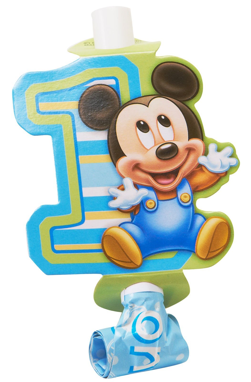 - Q: What are Mickey's 1st Birthday Blowouts made of? A: Mickey's 1st Birthday Blowouts are made of paper and plastic materials, designed to be lightweight and safe for children.