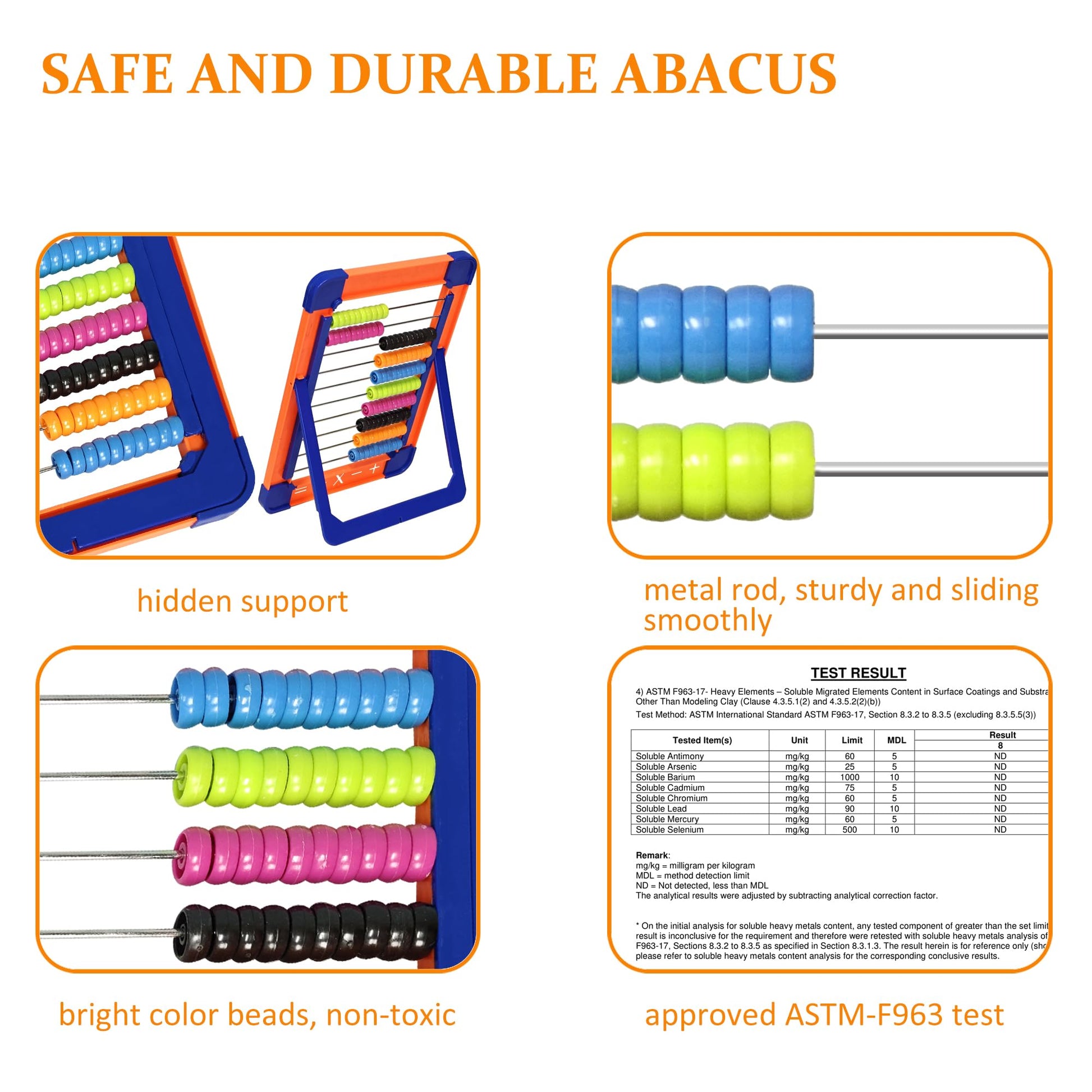 - Q: How does the abacus help with math learning? A: This abacus features 100 colorful beads and includes basic arithmetic symbols, making it ideal for teaching counting, addition, subtraction, multiplication, and division in a visual and engaging manner.