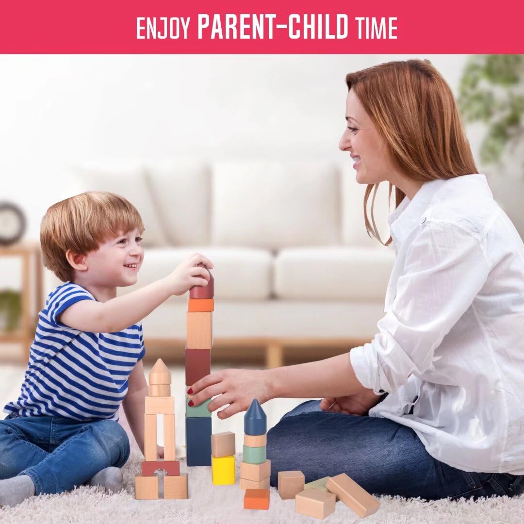 View compareMigargle Large Wooden Building Blocks For Toddlers - Educational Preschool Learning Toys With Storage Bag, Innovative Shapes & Variety Colors To Build More Combinations (48Pcs)