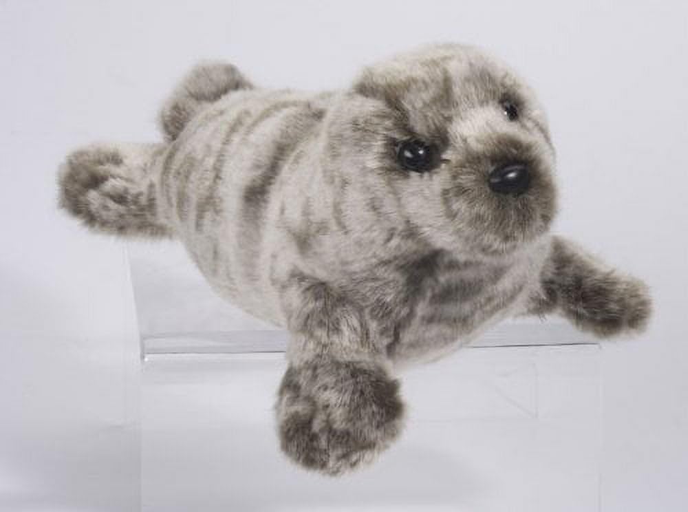 When it comes to favorite activities, Miki the cuddly seal stuffed animal loves lounging on sun warmed rocks next to the crash of the ocean surf! Keeping cozy is her goal in life and her beautifully speckled silvery coat of warm plush fur helps her do it! Pick her up and give this silky baby seal a snuggle! Springy polyester fill makes her soft, pudgy body extra huggable and able to hold up to hours of playtime fun. Miki's sweet, bright eyed expression has a mischievous look because when she's not napping, you will find her on the hunt for the next great adventure! If adorable maritime mammals are your thing, we're sure you'll love Miki the plush seal pup. Her realistic design is as cute and cuddly as they come!