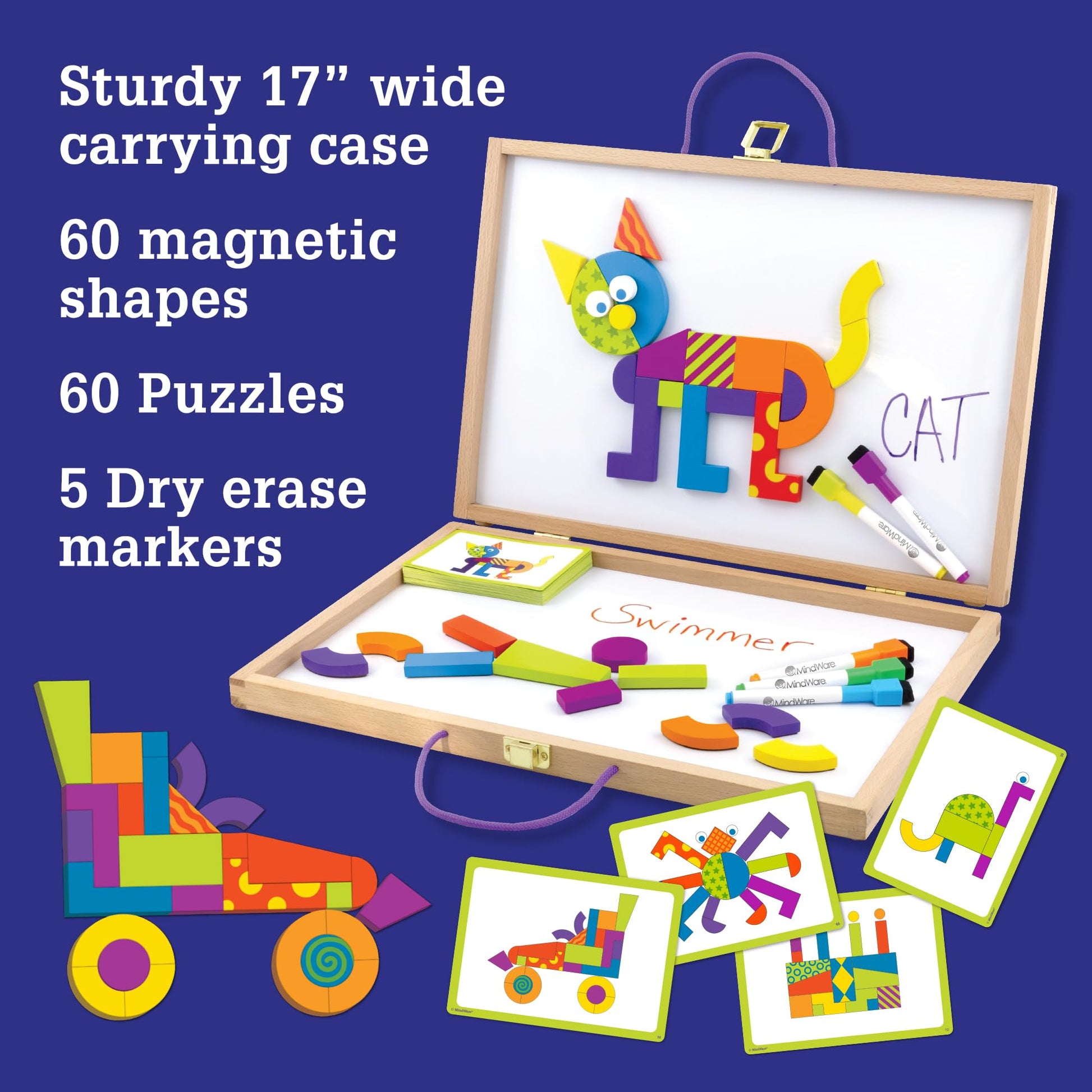 - Q: How many puzzles are included with the MindWare Imagination Magnets Patterns Deluxe? A: The set includes 60 all-new full-color puzzle cards that vary in difficulty, allowing children to progress from beginner to expert levels. This helps in developing patience and confidence through trial and error.