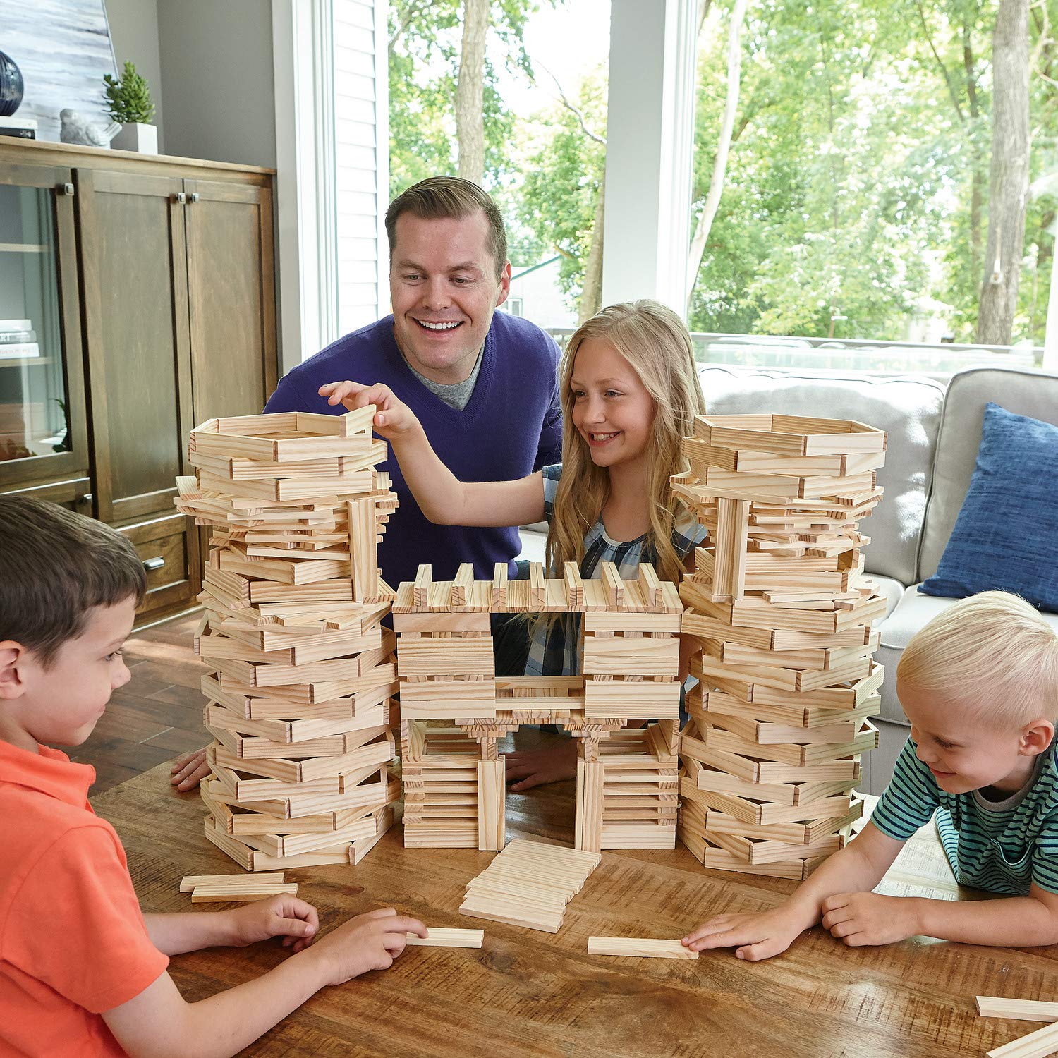 MindWare KEVA Structures 400 Plank Wooden Building Blocks Set - Includes 400 Pine KEVA Planks Canvas Storage Bag and Full-Color Idea Book