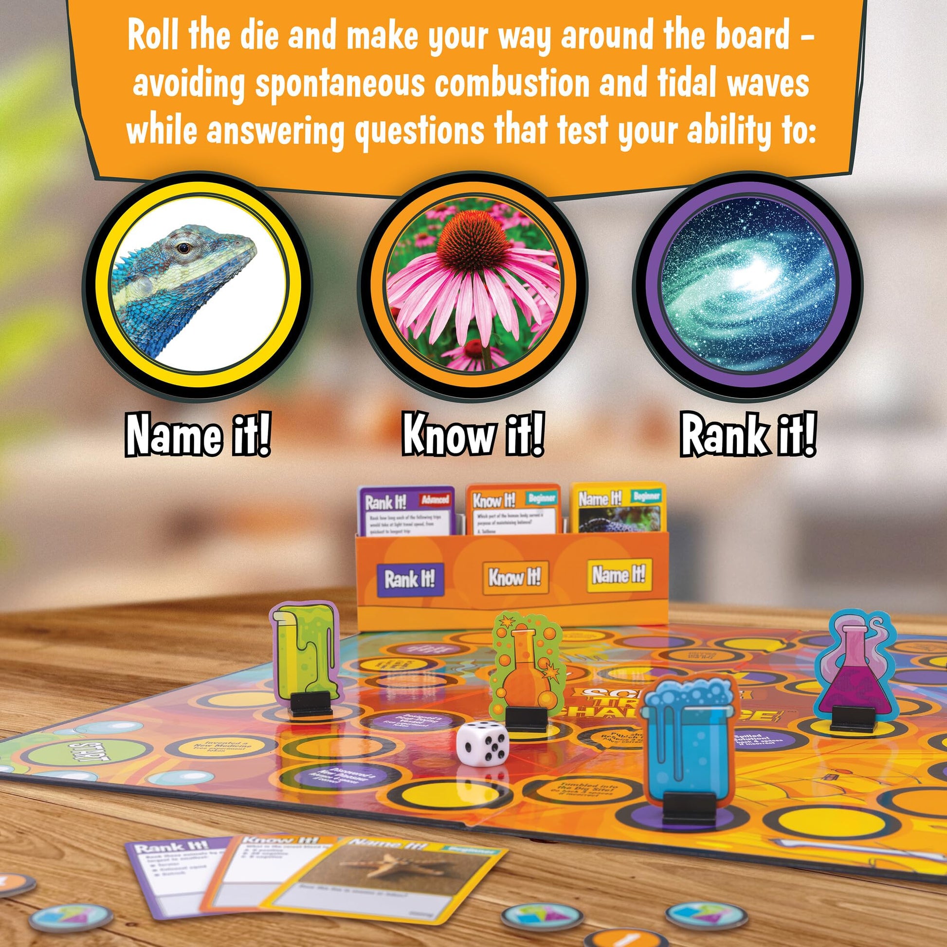 Players build their science knowledge through three types of stimulating challenge cards. Each card represents a different color and corresponds to the spaces on the board. Know It cards have multiple choice and true or false questions, Name It cards require players to identify the object in the picture shown, and Rank It cards challenge players to put a list of scientific items in order based on criteria like size, distance and speed. Each correct answer earns an observation token, and players keep in secret how many points they have accumulated until the end of the game! Like all MindWare products, this game teaches a multitude of beneficial skills. Our Science Trivia Challenge Game strengthens social skills, logic, scientific knowledge, deductive reasoning and more. Our Science Trivia Challenge Game is fantastic for individuals and groups alike. Either play by yourself and expand your knowledge or compete with friends and family!