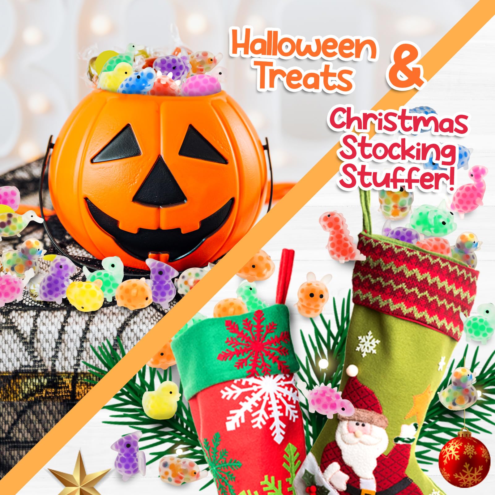 • Q: What are the best occasions to use these squishy toys? A: These squishy toys are perfect for various occasions, including party favors, classroom rewards, Halloween gifts, Christmas stocking stuffers, birthday gifts, carnival prizes, and Easter basket stuffers.