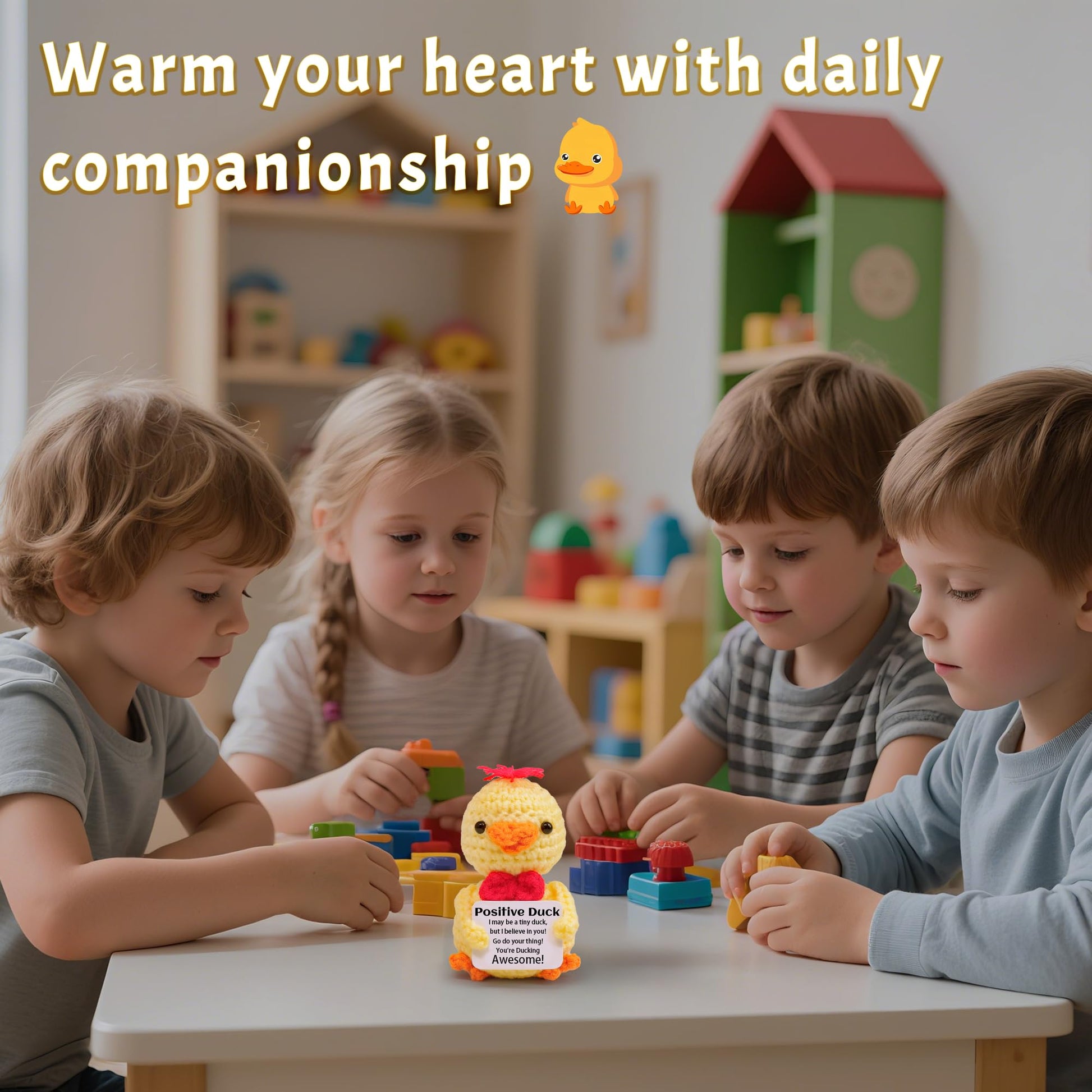 Mini Funny Positive Duck Knitted Wool Duck Toy with Positive Card - Creative Cute Crochet Doll Emotional Support Cheer Up Keepspirit-inspired flavor Gift for Friends Student Christmas