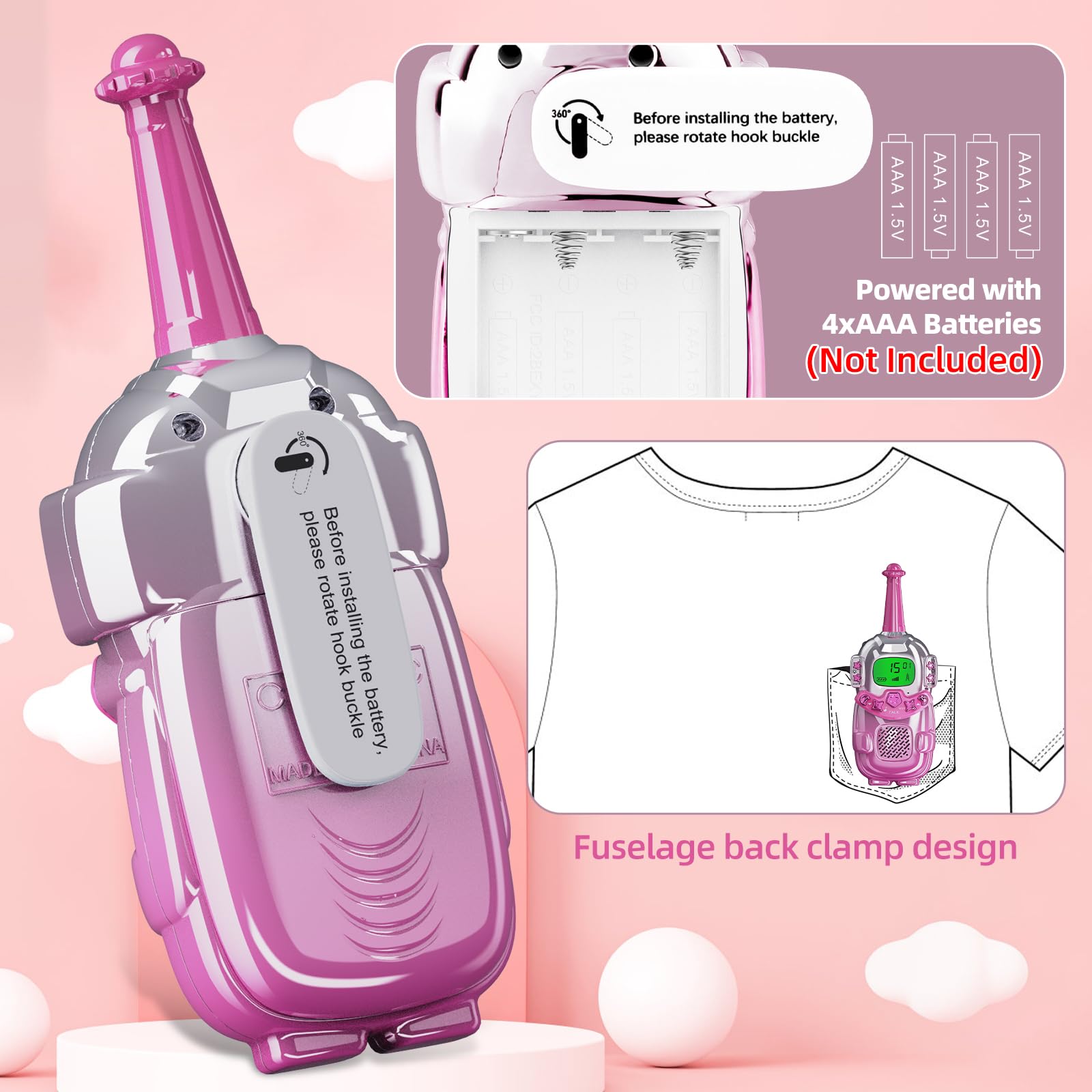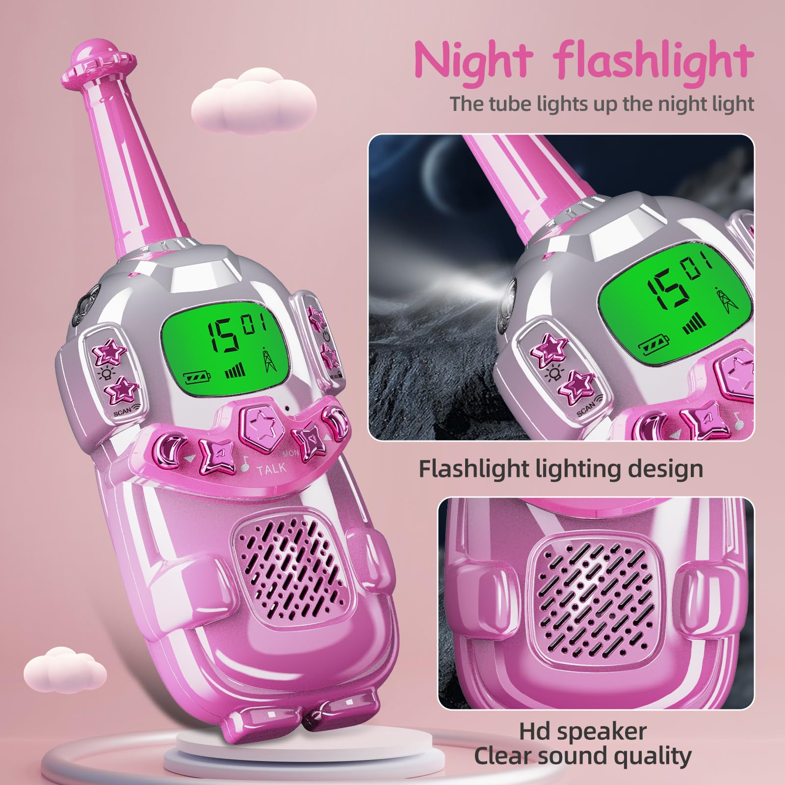 Mini Robots Walkies Talkies 2 Pack With Backlit Lcd Flashlight Toys Birthday Gifts For 3-12 Year Kids,3 Km Range For Camping, Hiking,Outdoor Games (Pink)