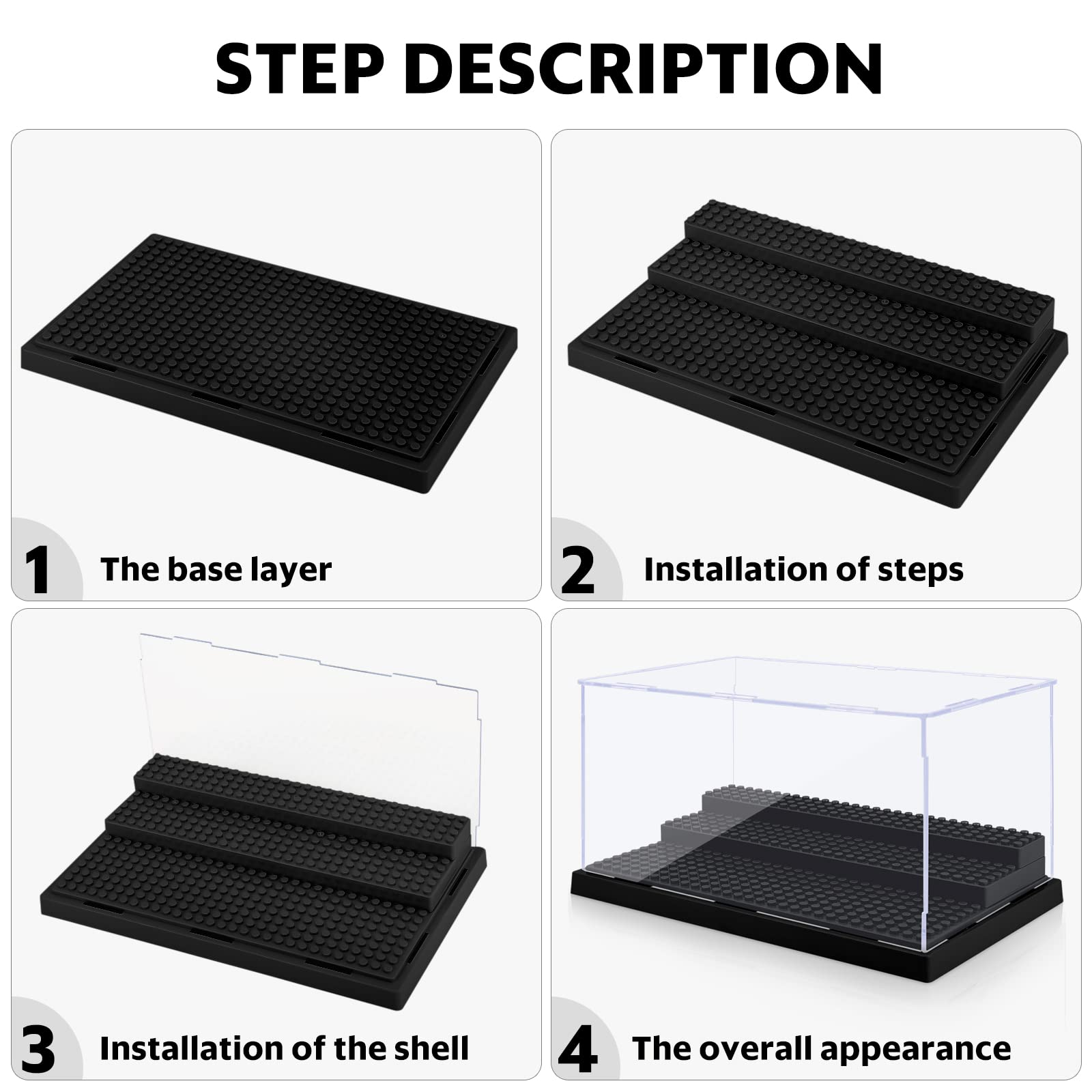 Minifigure Display Case For Action Figures Blocks, Clear Dustproof Acrylic Display Box Storage With 3 Movable Steps Gifts For Children,Black