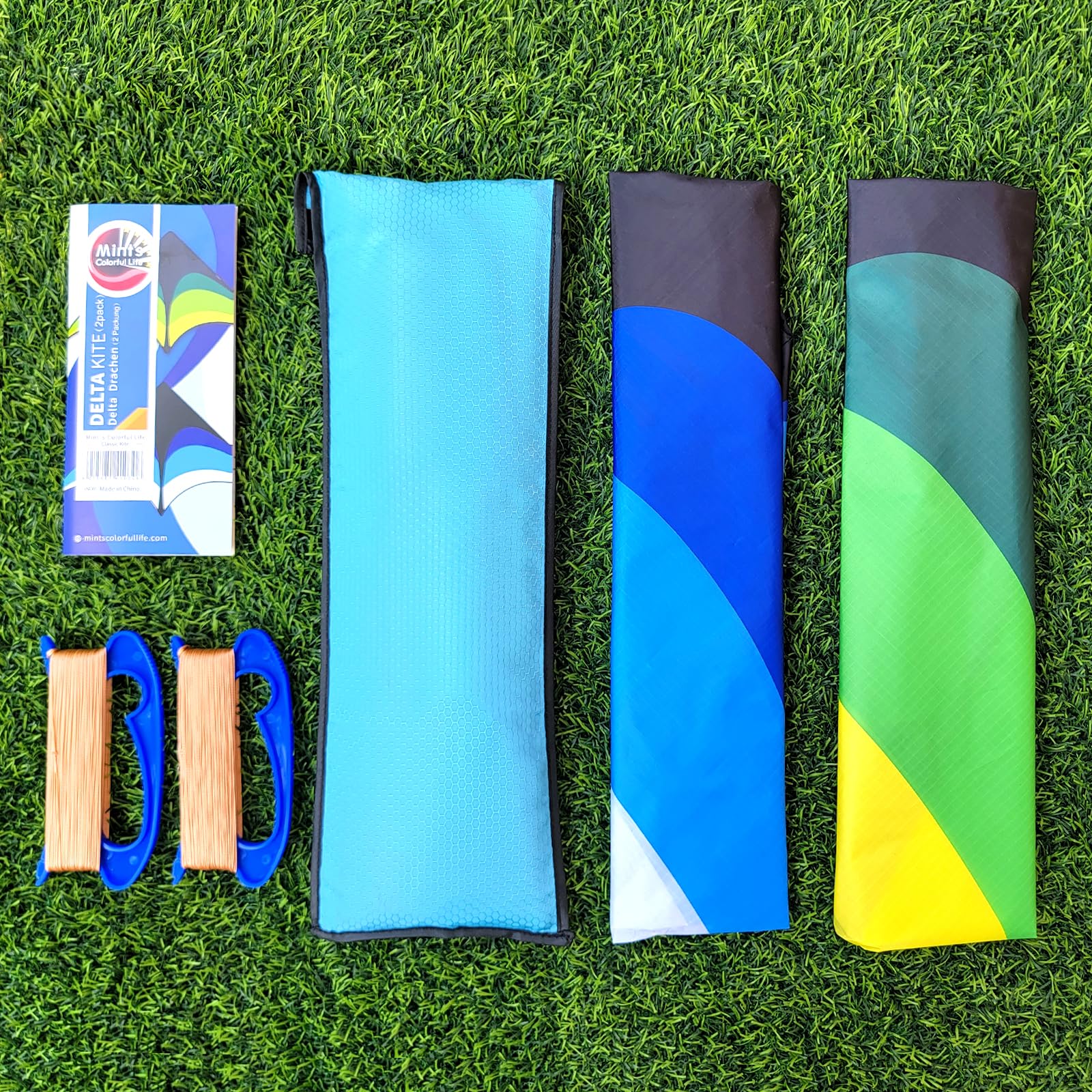 Mint'S Colorful Life 2 Pack Delta Kites For Kids & Adults, Extremely Easy To Fly Kite, Best Kite For Beginner(Green & Blue)