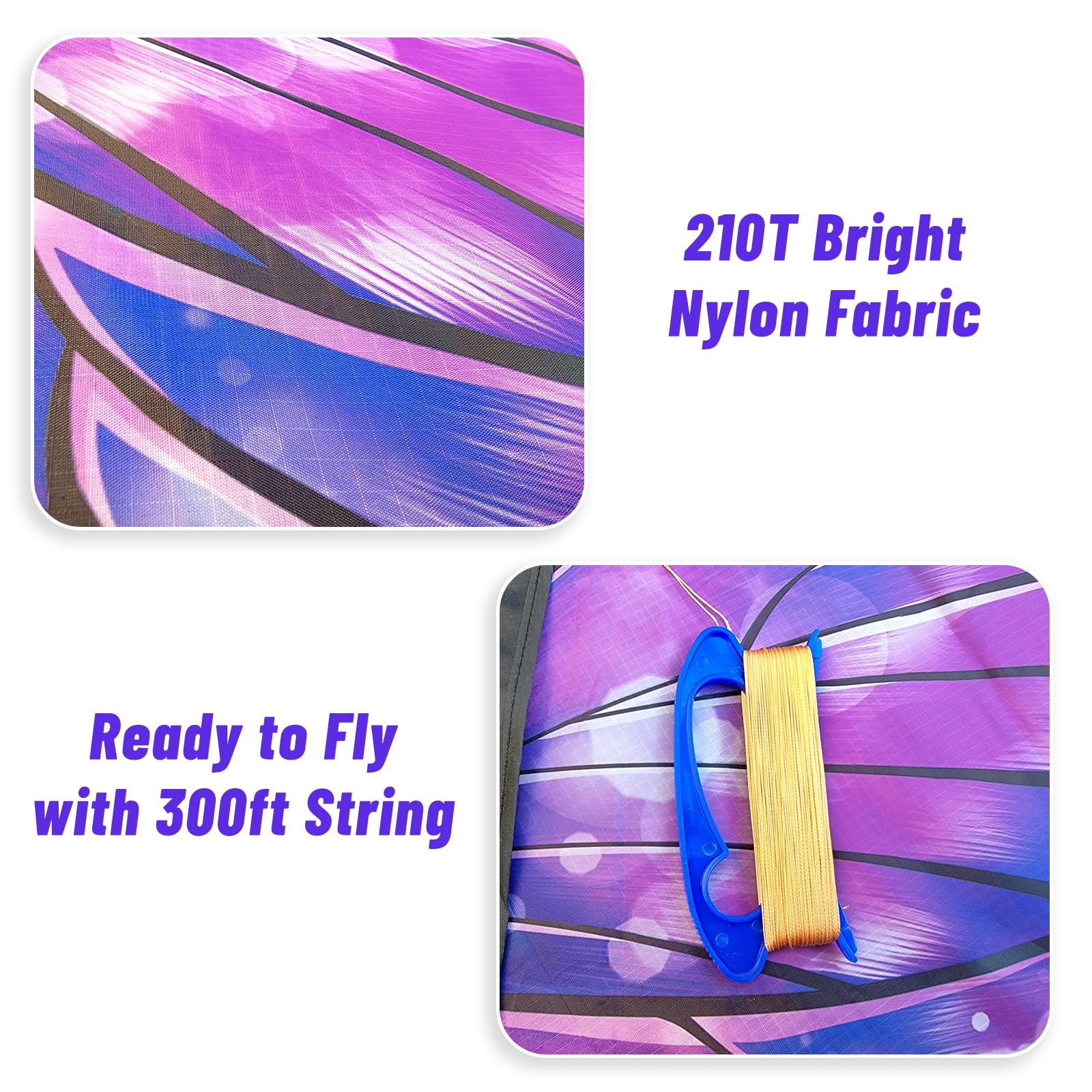 Butterfly Kite for Kids & Adults, Easy to Fly Kite for Beach, Large Single Line Kite with Long Tail &300ft Kite String (Purple)