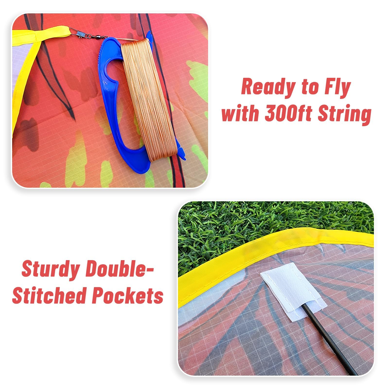 Mint'S Colorful Life Dragon Kite For Kids & Adults, Easy To Fly Kites For Beginners,Large Single Line Kite For Beach Trip With 3
