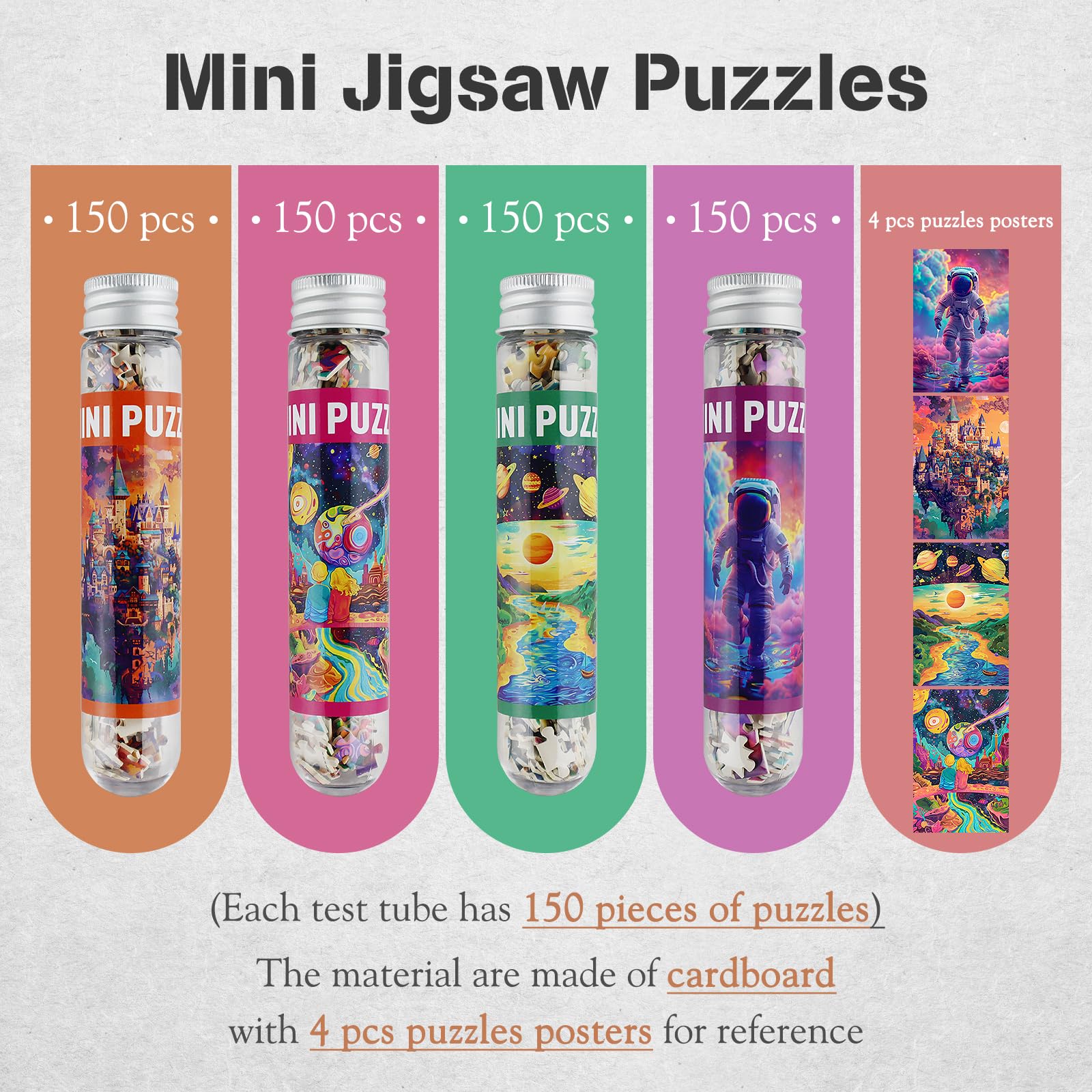 - Q: How many pieces do these puzzles contain? A: Each puzzle contains 150 pieces, designed to be small and challenging, perfect for puzzle enthusiasts looking for a unique experience.