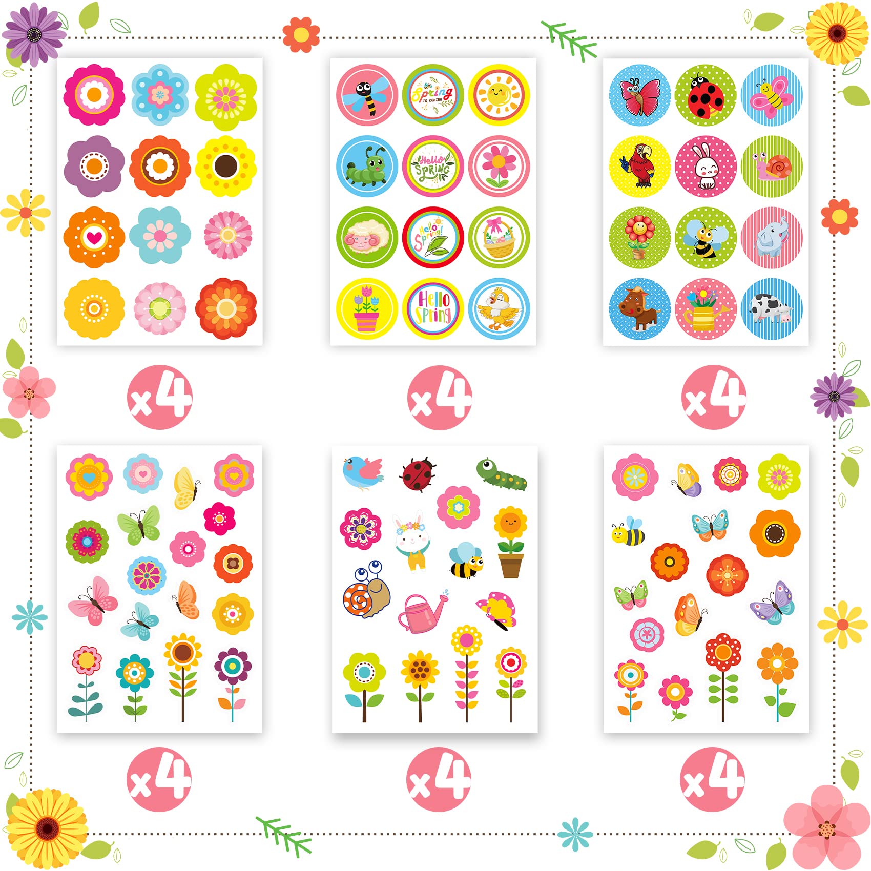 344 Pieces Spring Stickers For Kids In A 24Sheets 6 Different Designs Spring Stickers For Easter Family School Party Favor