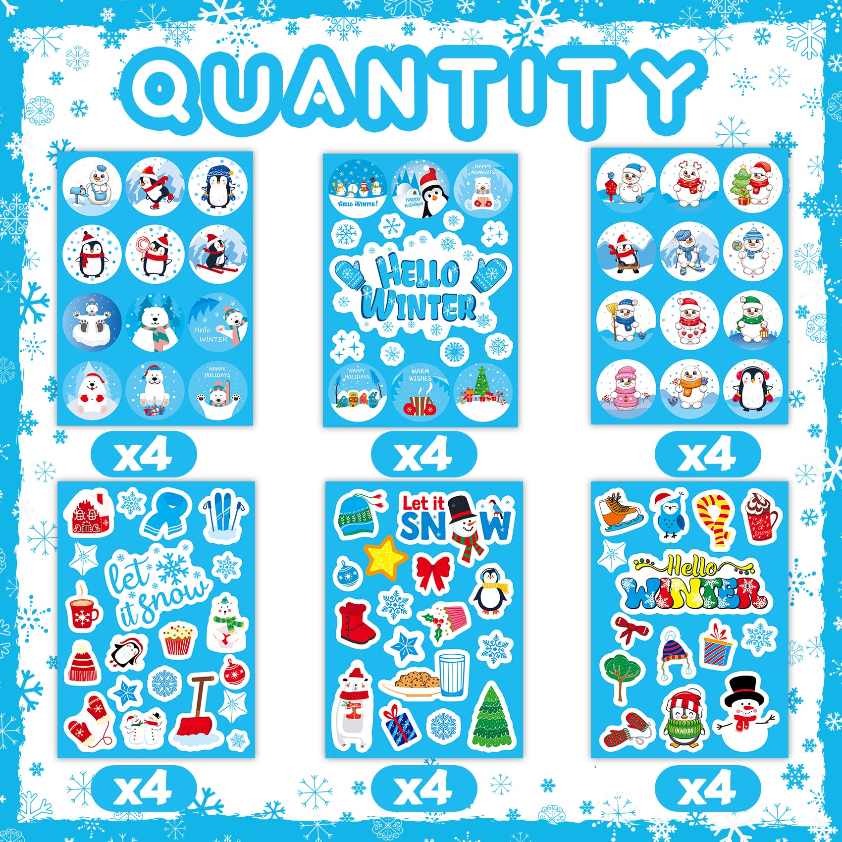 - Q: How many stickers are included in the Winter Holiday Sticker bulk pack? A: The Winter Holiday Sticker bulk pack contains a total of 356 pieces across 24 sheets, featuring 6 different styles for endless creative possibilities.