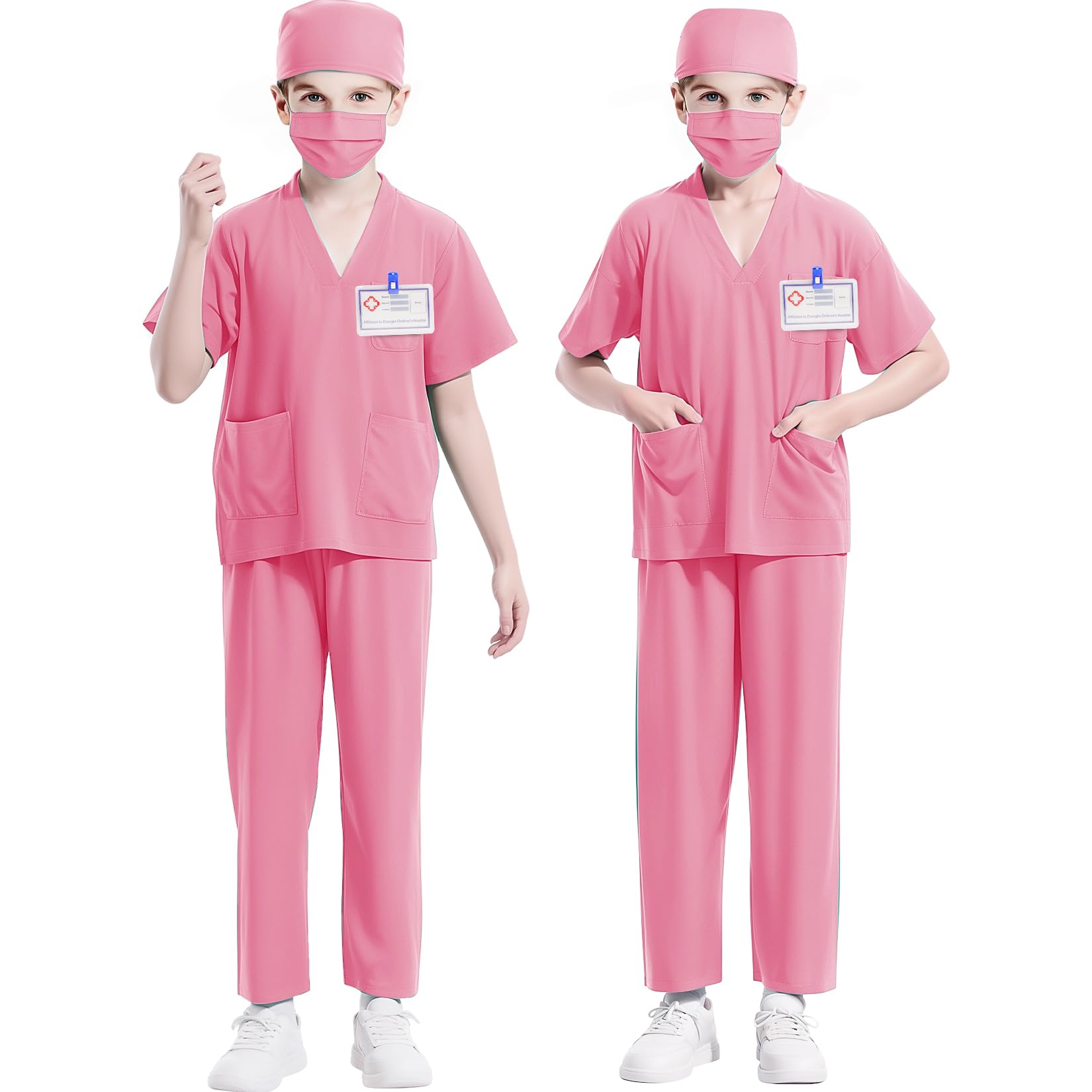Mizzuco Doctor Costume For Kids,Toddler Nurse Scrubs Halloween Dress Up Cosplay For Boys Girls 3-12 Years (Pink, Xxl-150Cm/8-9Yr