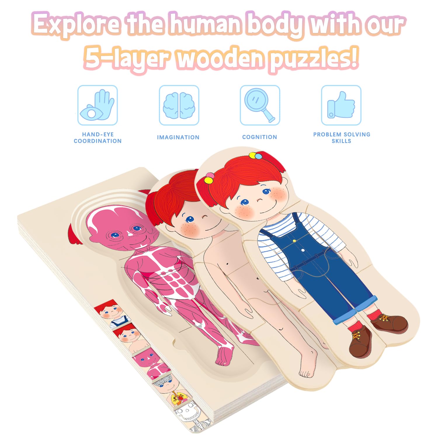 Moinkidz Wooden My Body Puzzle For Toddlers & Kids, Girls Montessori Anatomy Puzzle Kid Play Set, Preschool Game Learning Human