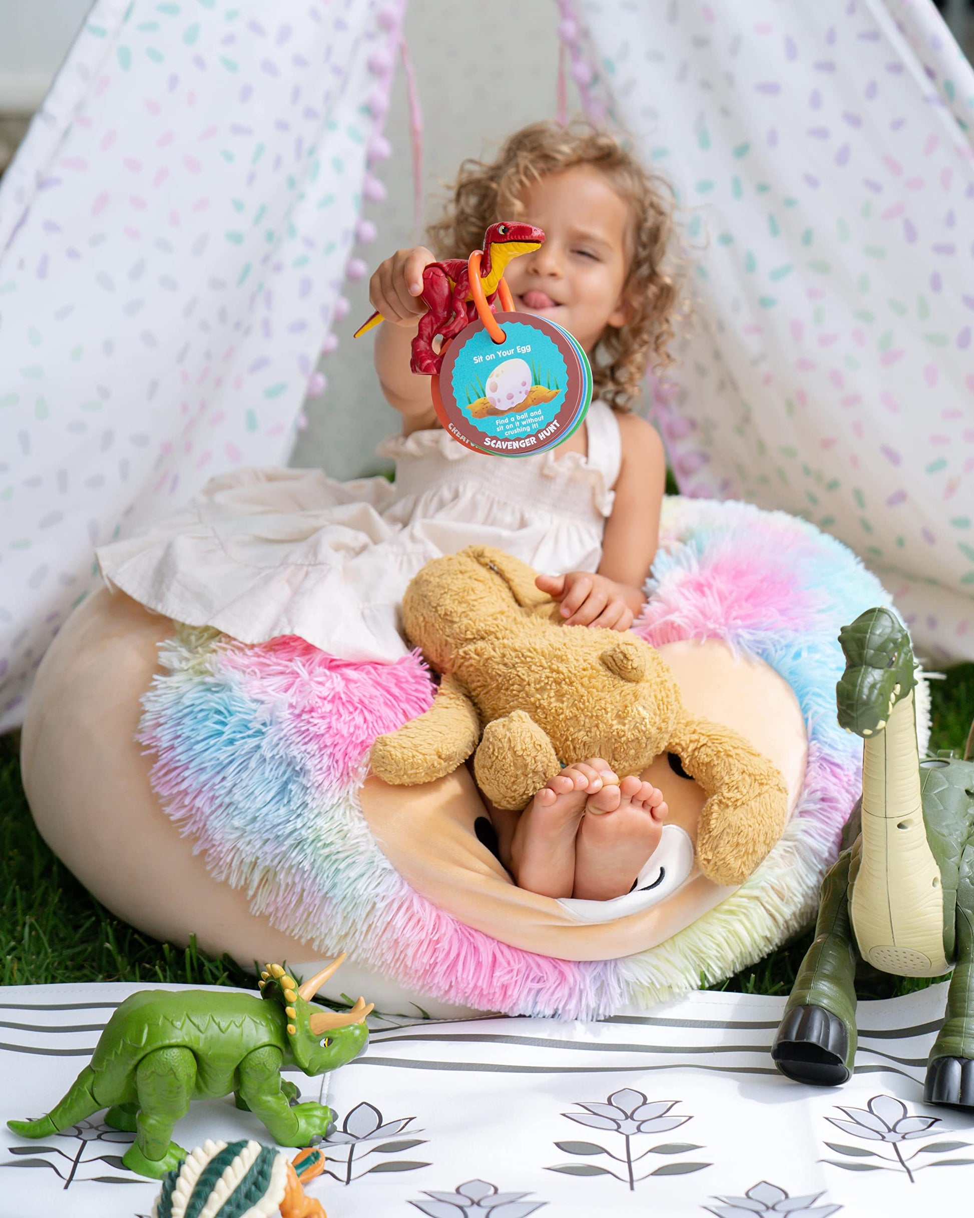 - Q: How do the Dino Stomp and Roar cards promote physical activity? A: The cards feature activities in the 'Dynomite Dinos' category that encourage kids to run, crawl, and stomp like ancient dinosaurs, promoting physical activity and imaginative play.