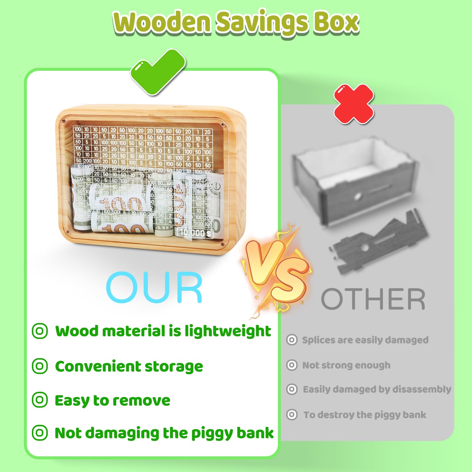 View compareMoney Saving Box, Wooden Bank For Boys And Girls, Reusable Cash Vault Wooden Money Vault Adults Cash Money Box With Counter For