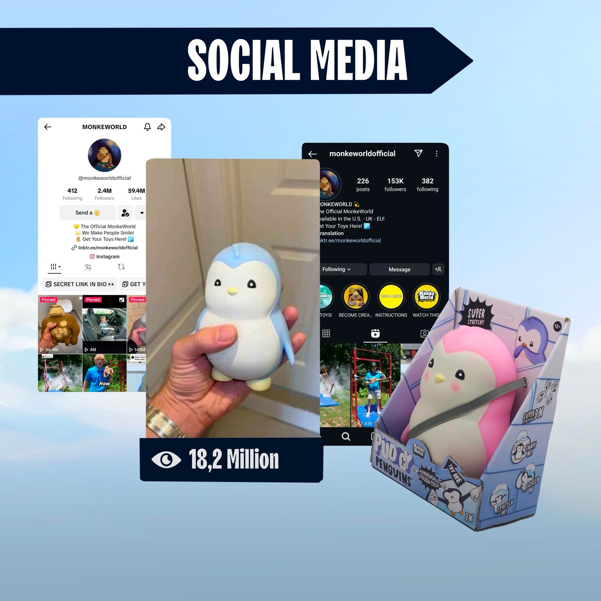- Q: What is the size and weight of the MonkeWorld Pudgy Penguin Squishy Toy? A: The squishy toy measures 4.3 inches in length and 3.3 inches in width, weighing 2.12 ounces. Its small size makes it easy for kids to hold and squeeze.