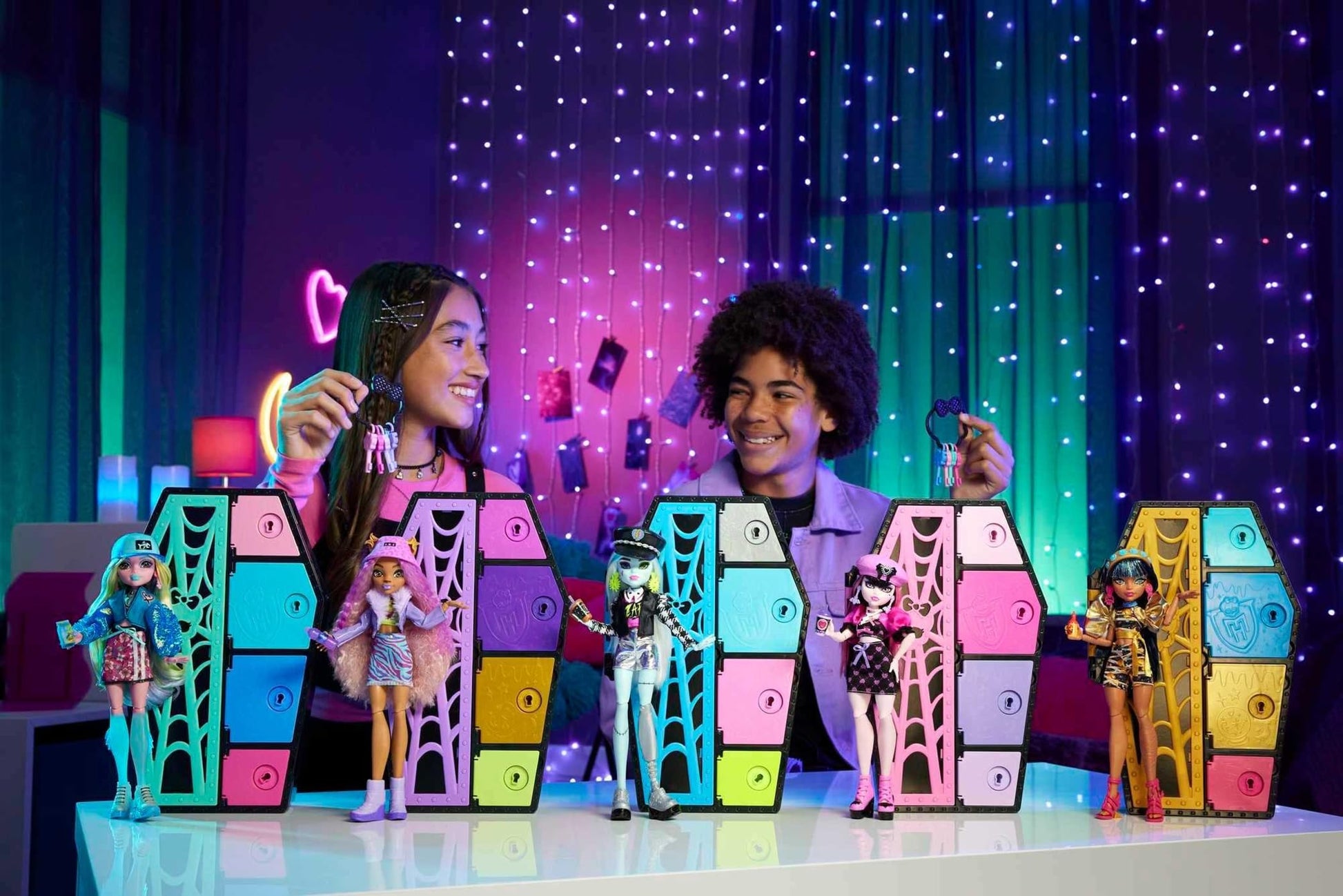 Monster High Skulltimate Secrets dolls offer a spooktacular unboxing experience with 19+ surprises that include fashions, surprises and themed pieces. Color Reveal technology and step-by-step unveiling add magic and mystery, while the coffin container is perfect for storytelling and storage. Each sold separately, subject to availability. Fully articulated. Doll cannot stand alone. Colors and decorations may vary.