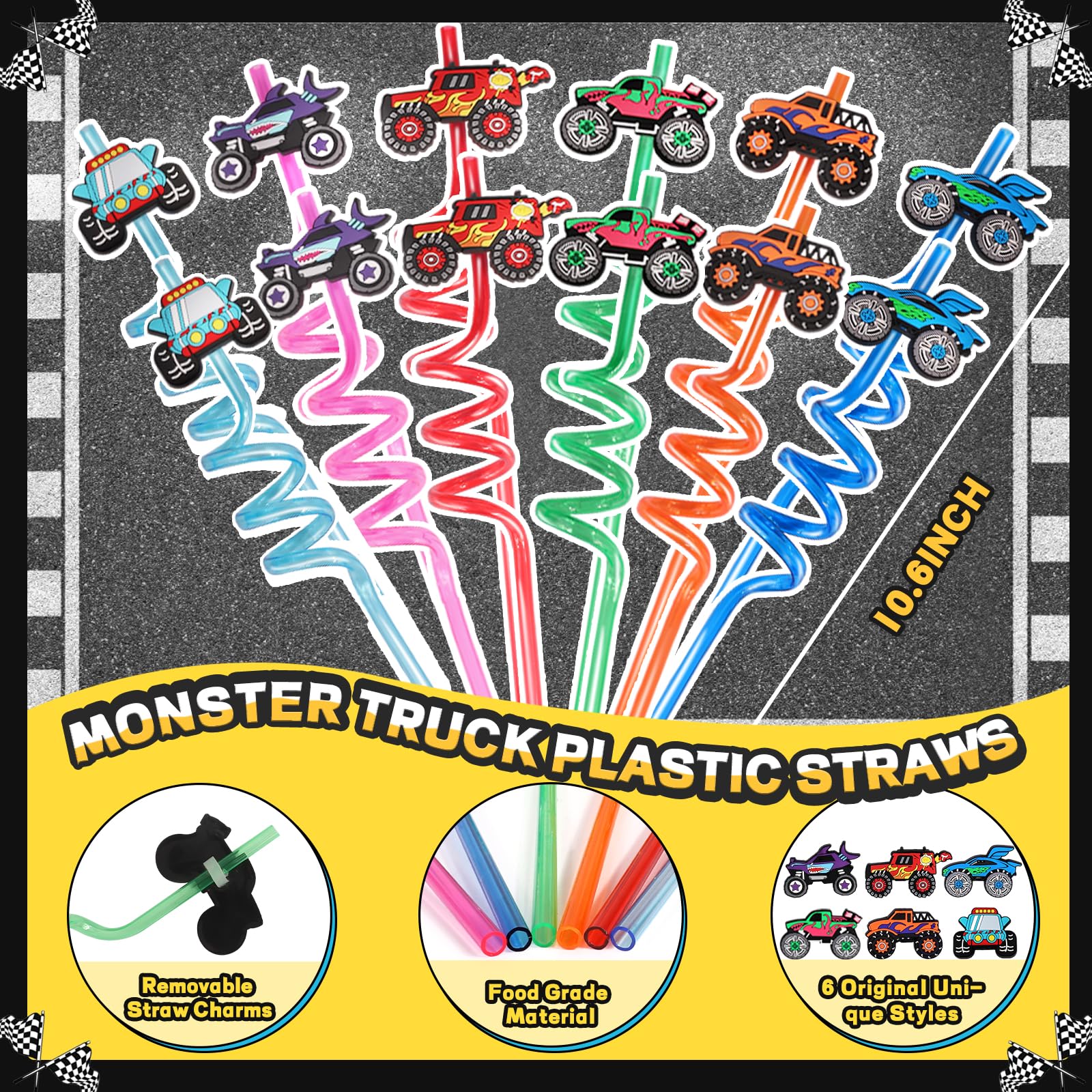 - Q: What items are included in the Monster Truck Party Favors set? A: The Monster Truck Party Favors set includes 12 drinking straws, 12 mini pull cars in random colors and styles, 12 keychains, 12 gift bags, 16 DIY stickers, and 10 temporary tattoos, providing a comprehensive package for your party needs.
