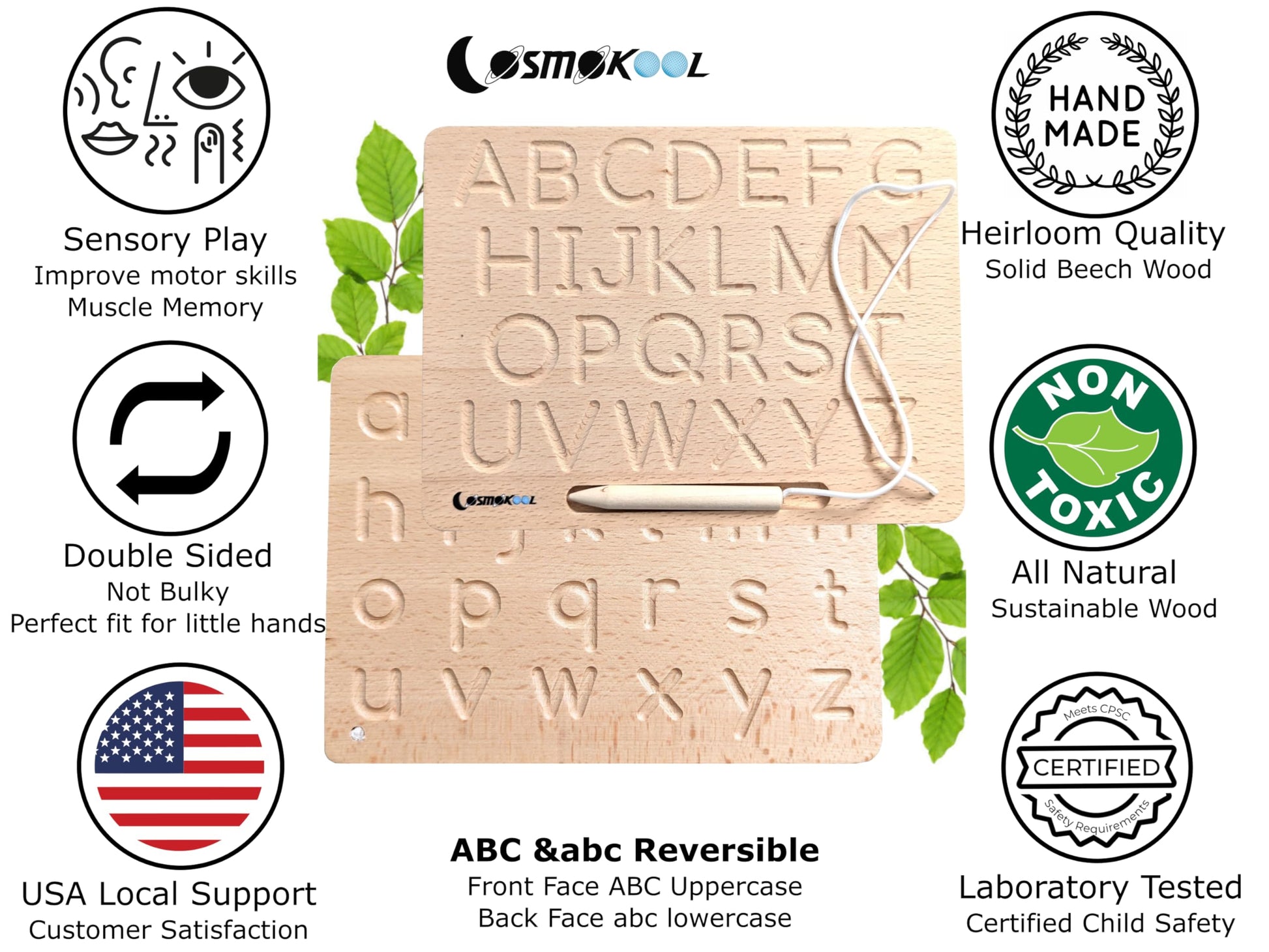 Montessori Alphabet Tracing Board | Abc + Abc| Lowercase + Uppercase Double Sided | Abc Letters| Alphabet Learning Toys 3+ Year