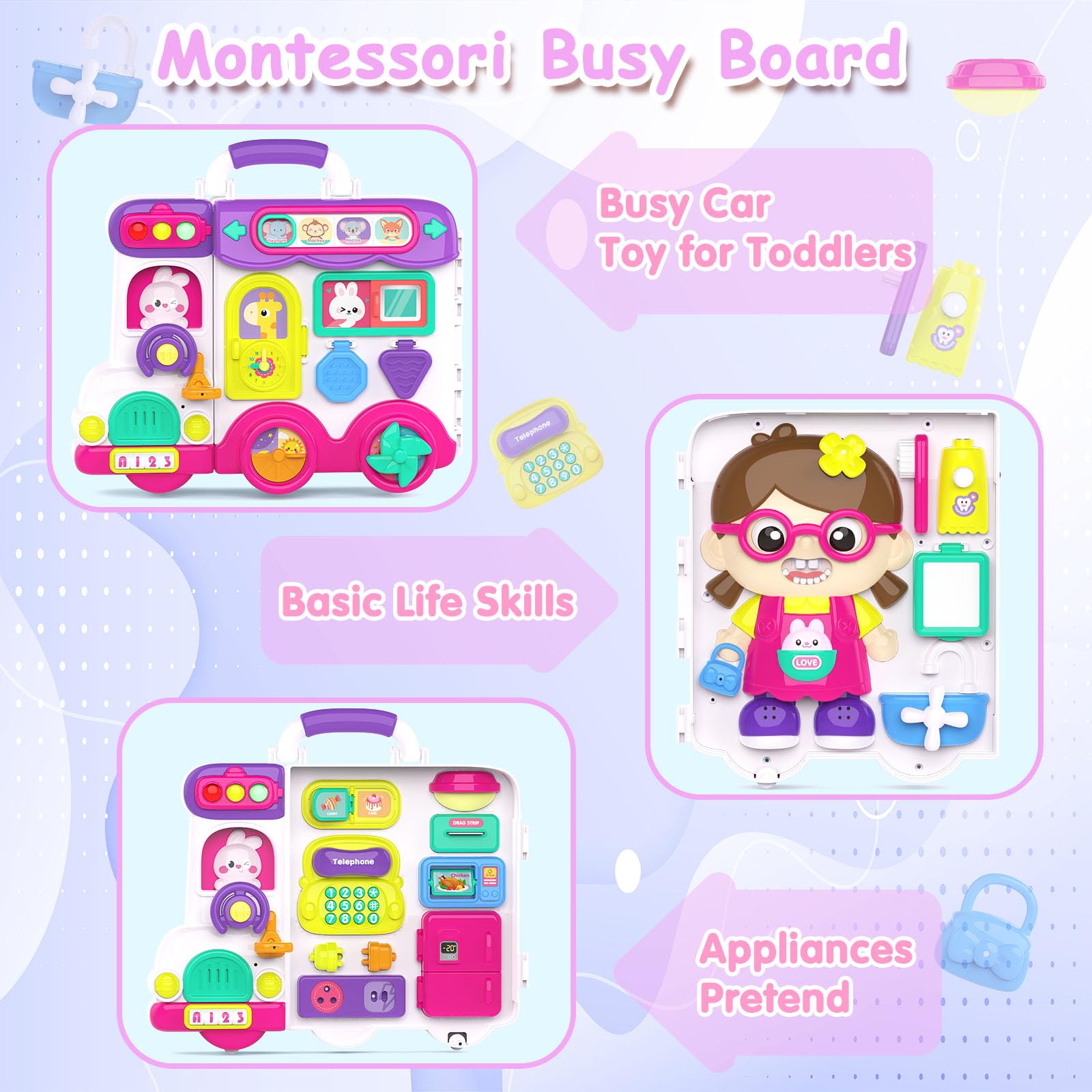 Montessori Busy Board For 1-2 Year Old Girl Gift,Musical Toys For Toddlers 1-3 Year,Educational Fine Motor Baby Toys For 12 18 M