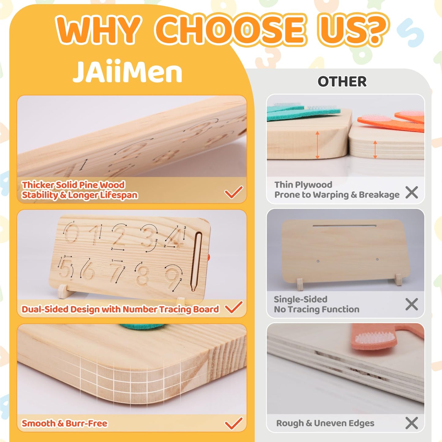 View compareMontessori Learning Toys for Toddlers 2-4, Double-Sided Finger Counting & Number Tracing Board, Colorful Number Blocks, Solid Pi