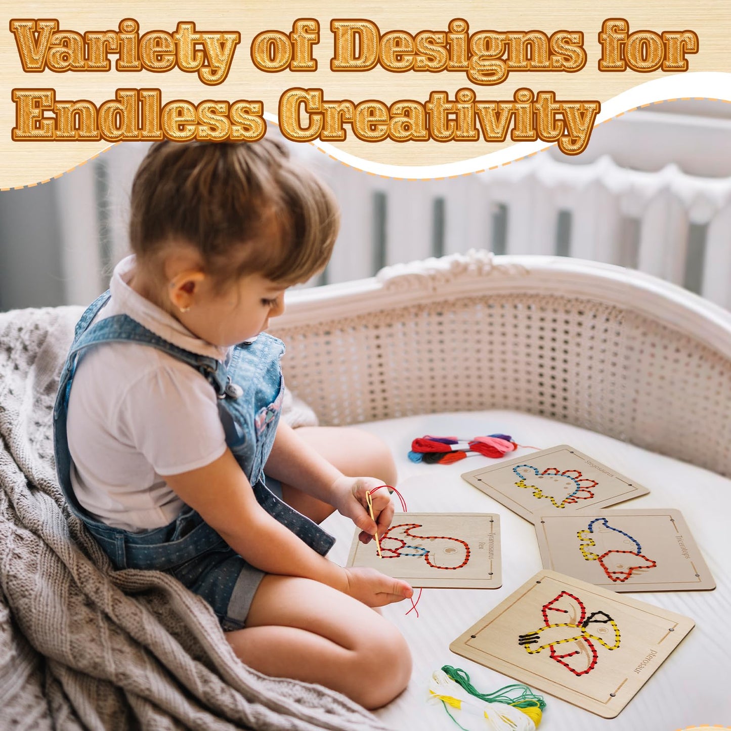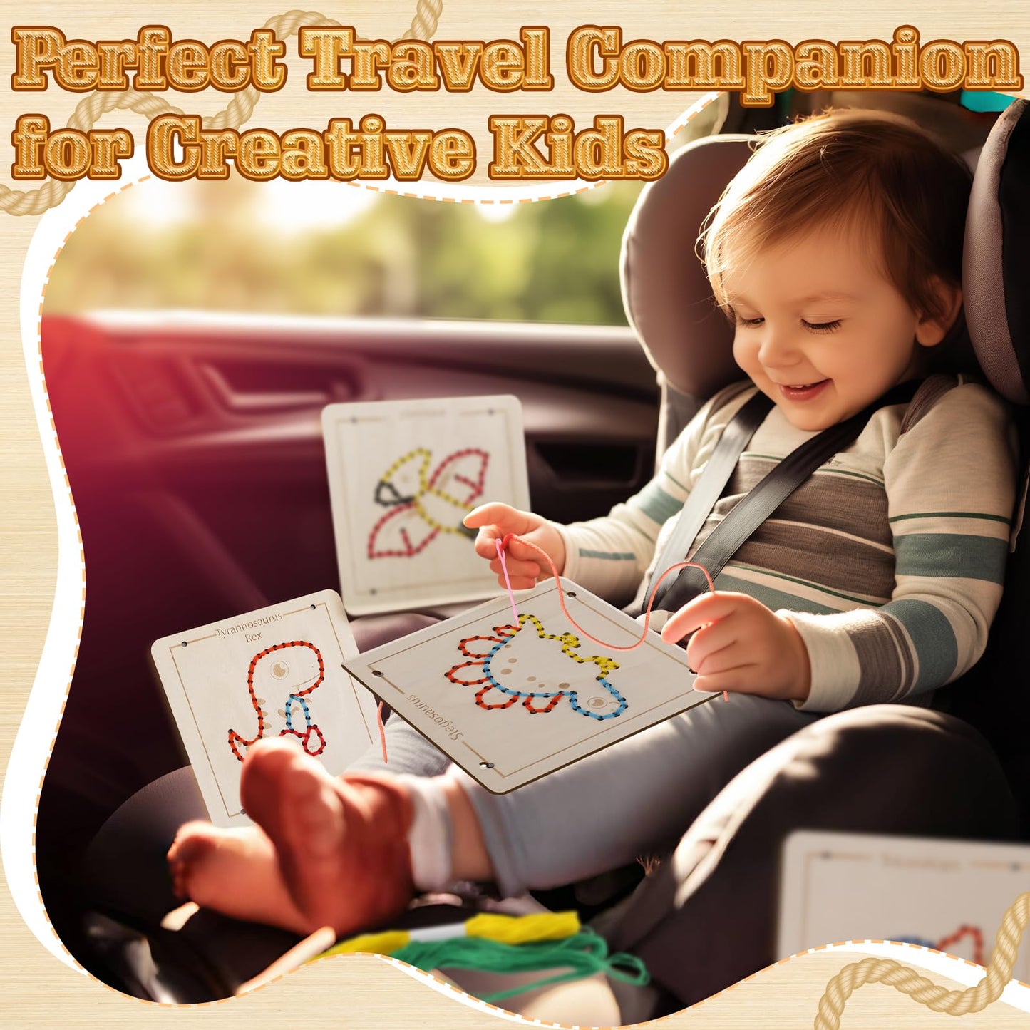This Toy Set Includes 4 Different Wooden Lacing Templates, 10 Vibrant Colors Of Yarn, And 4 Plastic Threading Needles, Offering A Rich Hands-On Exploration And Creative Experience.