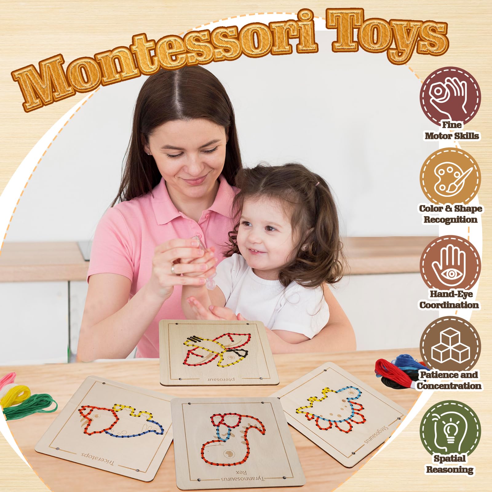 Montessori Wooden Lacing Dinosaur Toys For Toddlers And Kids Ages 2-4 5-7, Sewing Kit Fine Motor Skill Busy Board, Education Sensory Preschool Toy For 1 2 3 4 Year Olds, Birthday Gift For Boys Girls