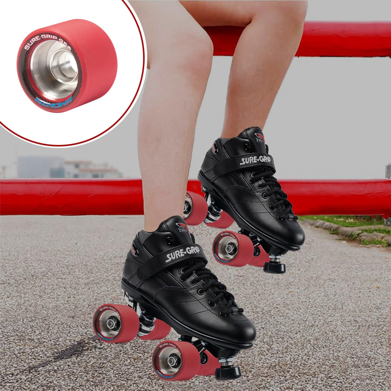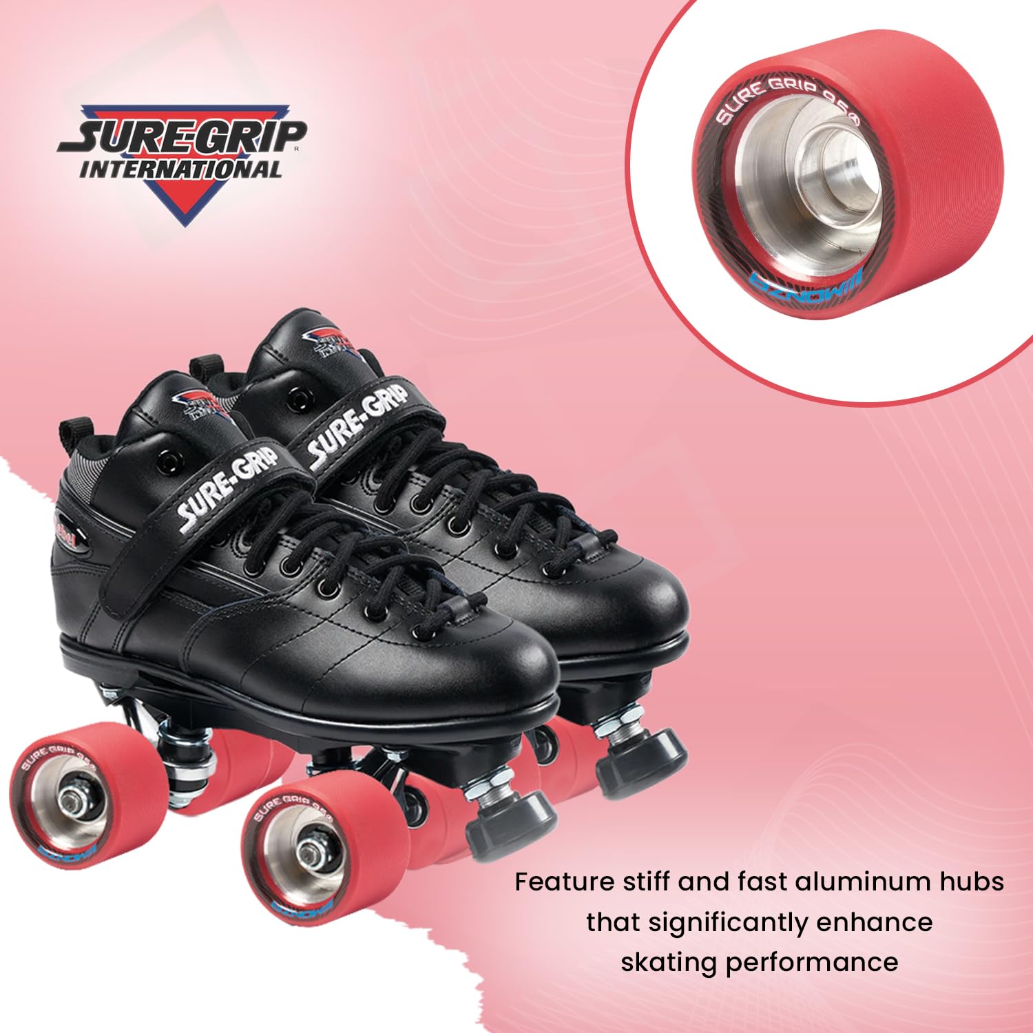 The Monza wheel is a brand new wheel in the Sure-Grip line of products. This brand new compound was designed to work better than its predecessor, the Power Plus wheel. Completely redesigned to offer a better look and feel in every way. A cross between our Zombie and Cannibal wheels, grip of the Zombie and speed of the Cannibal. Perfect for every day skating but also great for derby and speed skating. 62mm x 42mm profile. Sold in 8 packs. Made in USA.