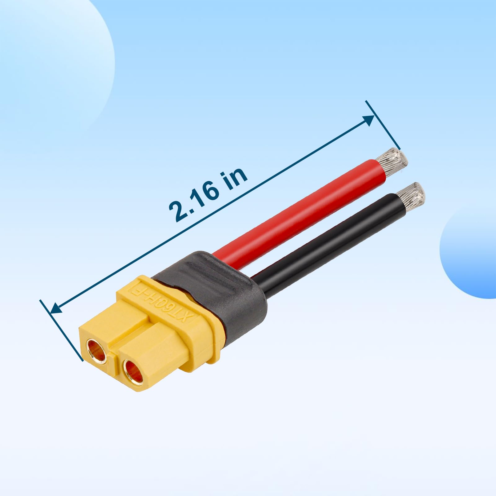 - Q: What are the specifications of the MOOKEERF XT60 Plug connectors? A: The MOOKEERF XT60 Plug connectors feature 12AWG silicon wire, are rated for up to 55A continuous current, and include 3 pairs of connectors (3 female and 3 male) each with a length of 55mm.