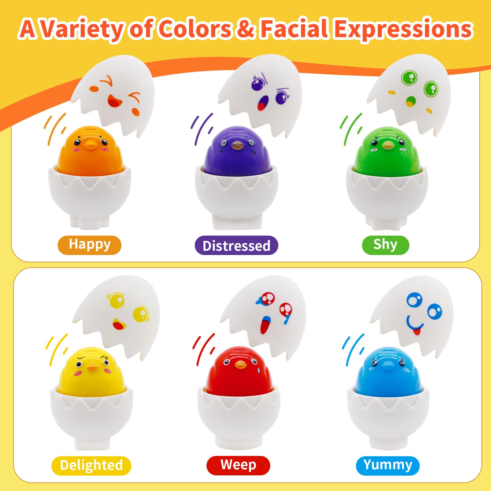 MOONTOY Montessori Hide & Squeak Chicken Egg Toys Toddlers 1-3 Educational Learning Toys for 1 2 3 Year Old Girl Boy Gift Color Sorting Travel Baby Chick Toys 12-18 Months Sensory Shape Sorter Puzzle