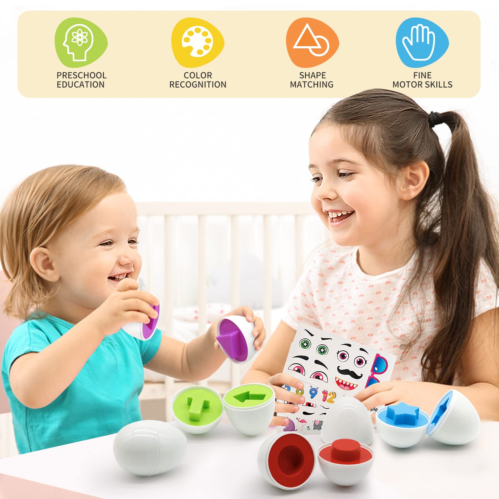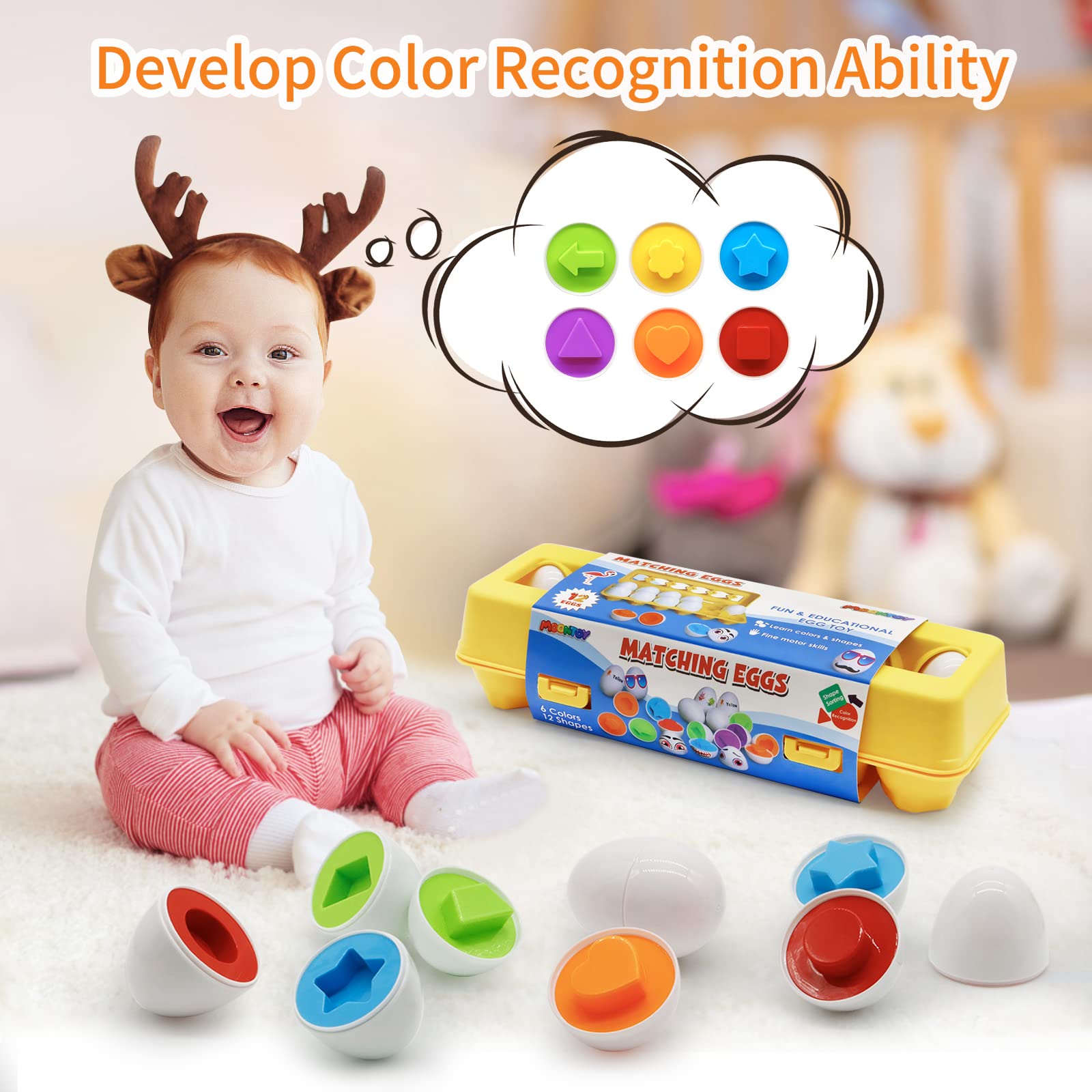 MOONTOY 12PCS Matching Eggs for Toddlers Color and Shape Recognition Preschool Learning Educational Toys Easter Eggs Sorter Puzzle Game Fine Motor Skill Montessori Gift for 1 2 3 Year Old Boys Girls